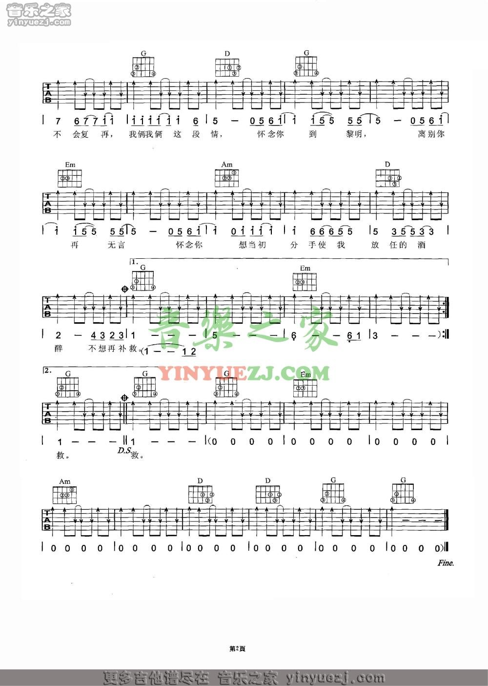 Beyond《怀念您》吉他谱,YYZJ编配出品,共有2张高清图谱,免翻页排版设计。