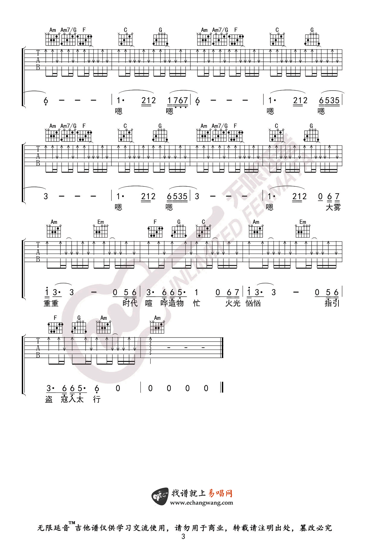 万能青年旅店《山雀》吉他谱_吉他弹唱谱_无限延音编配