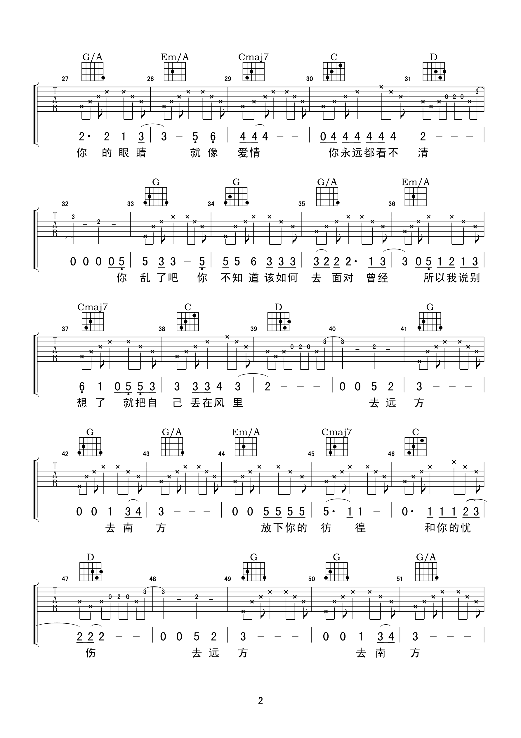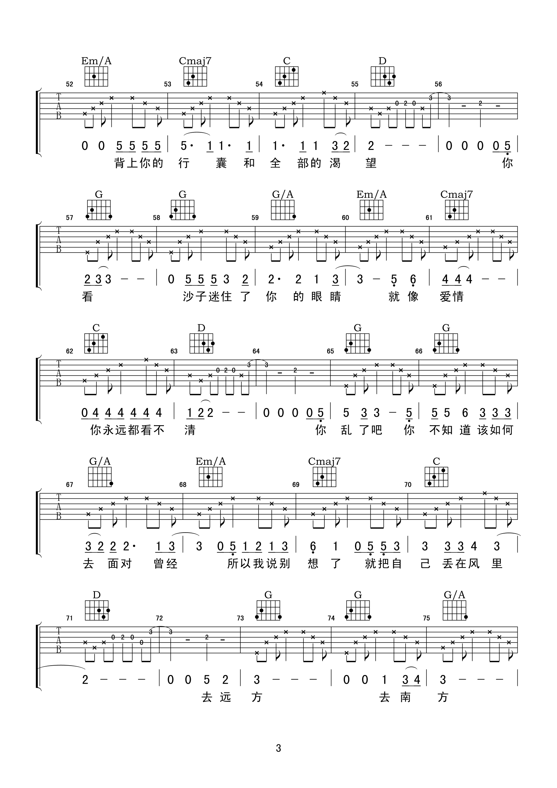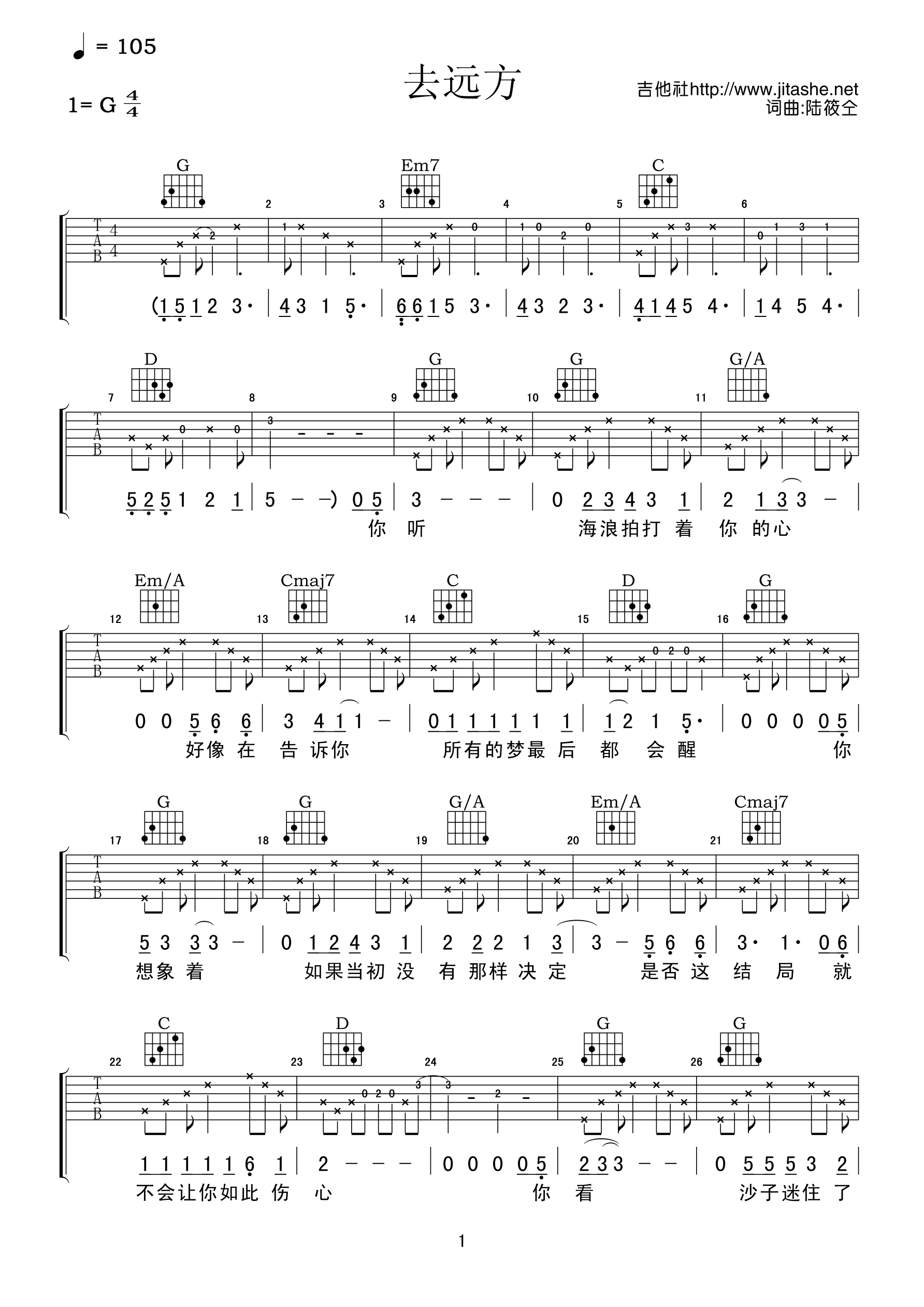 陆筱仝《去远方》吉他谱,小叶歌编配出品,共有4张高清图谱。