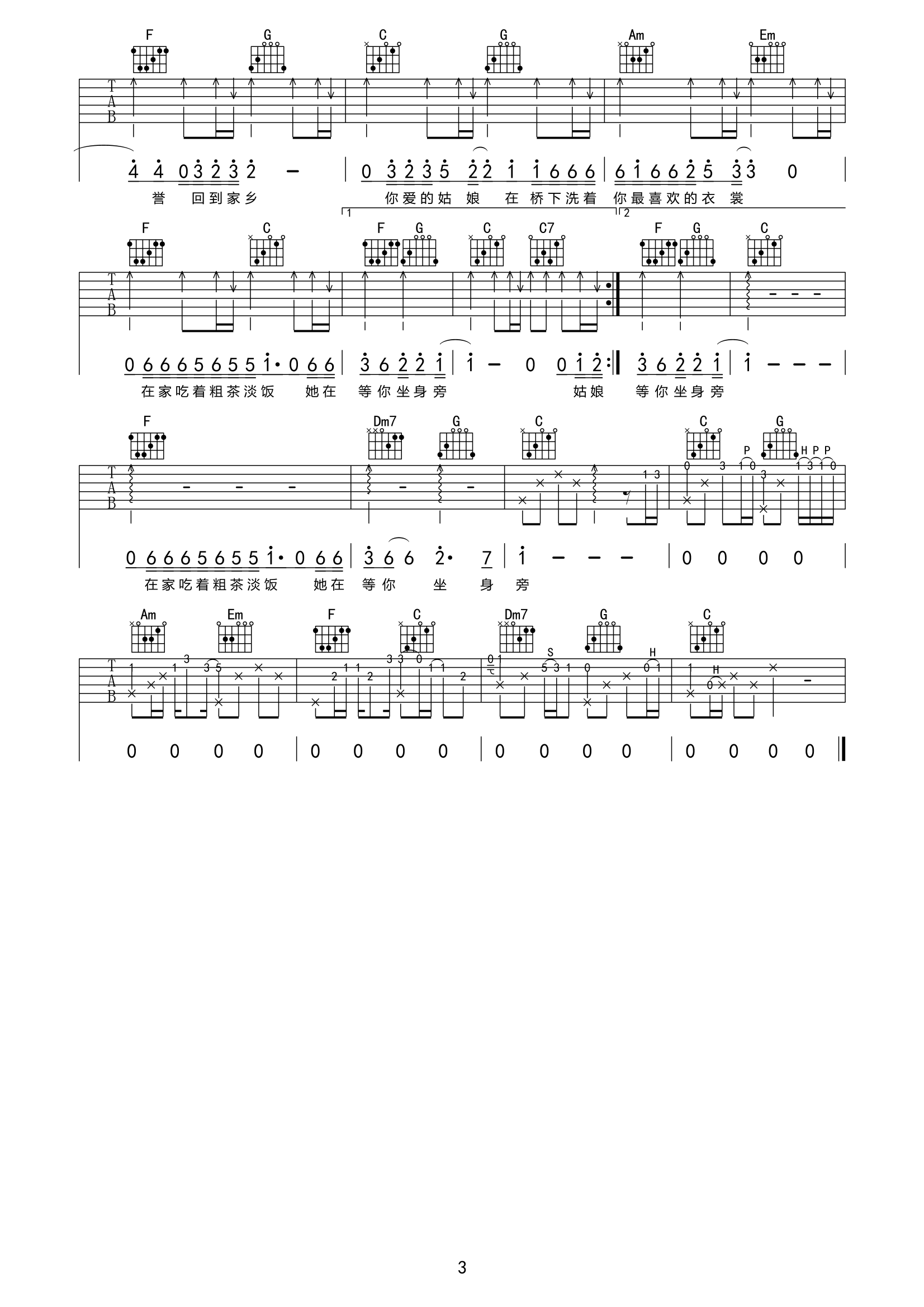 隔壁老樊《你的姑娘》吉他谱,共有3张高清图谱。