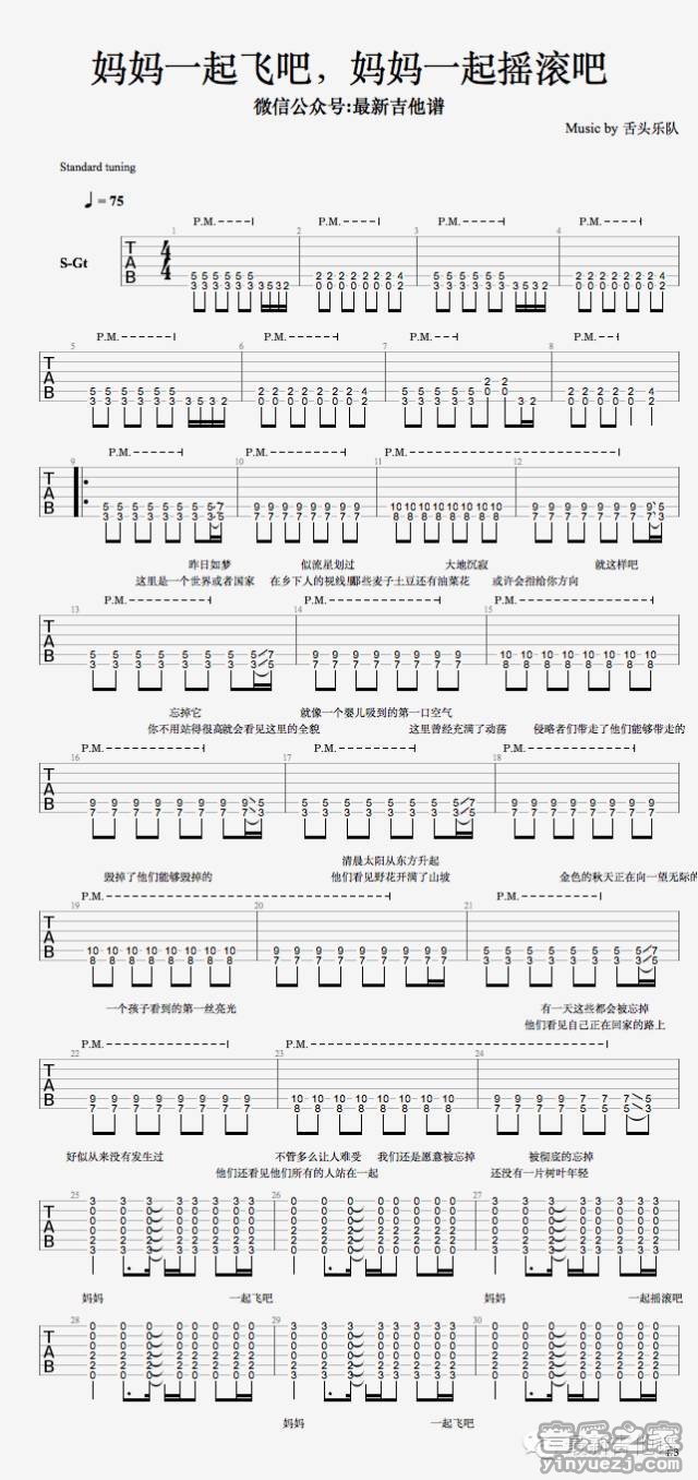 舌头乐队《妈妈一起飞吧 妈妈一起摇滚》吉他谱_吉他弹唱谱_最新吉他谱编配