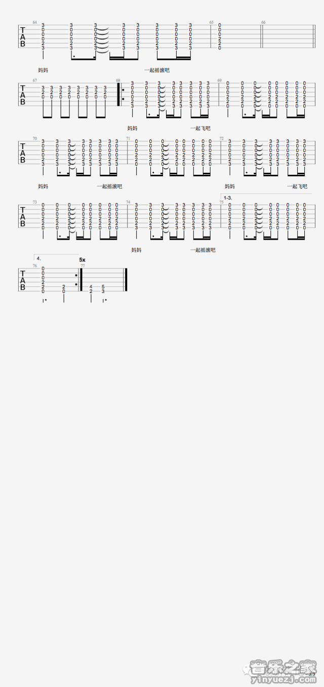 舌头乐队《妈妈一起飞吧妈妈一起摇滚》吉他谱,最新吉他谱编配出品,共有3张高清图谱。