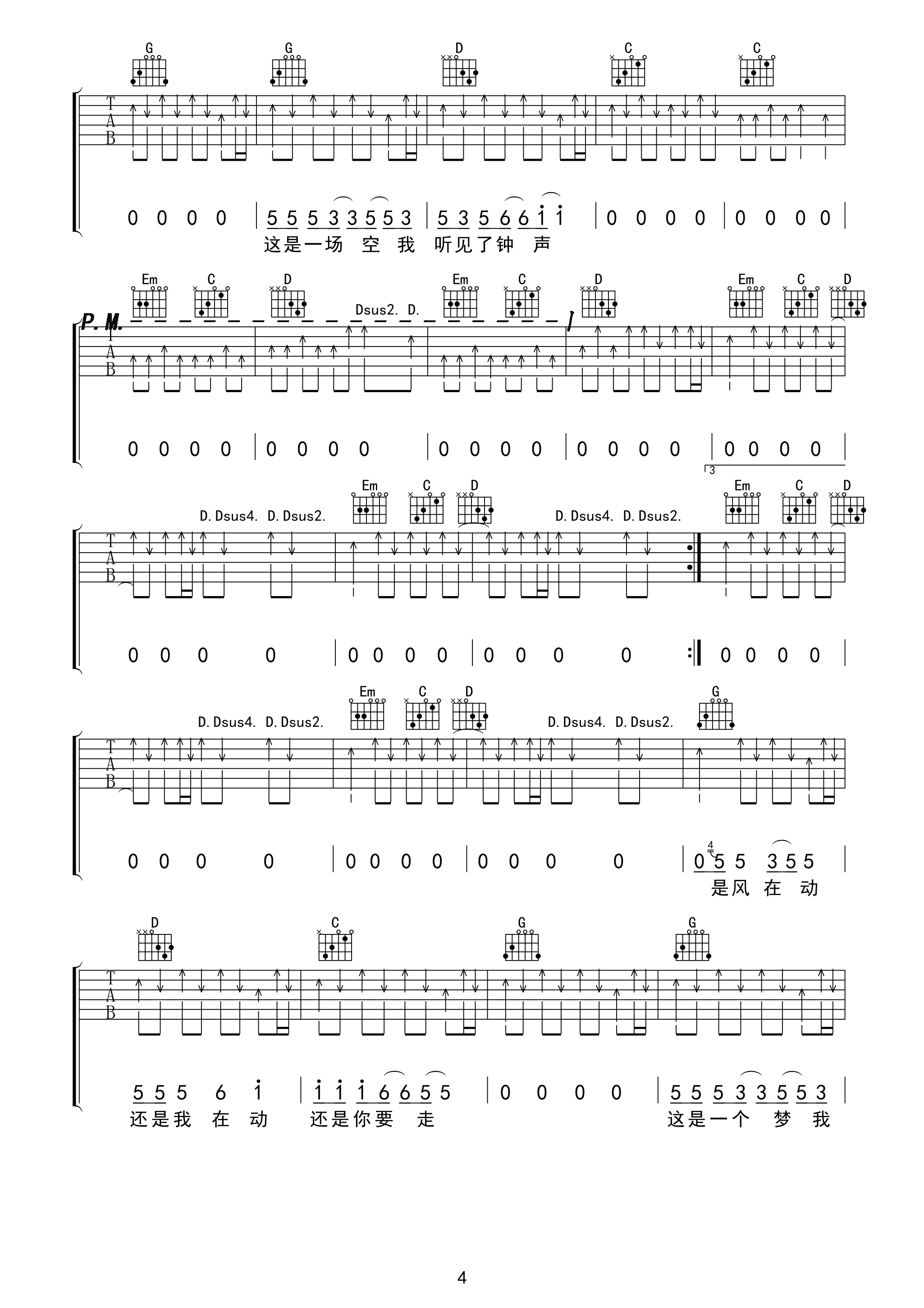 川子《钟》吉他谱_吉他弹唱谱_弦心距编配