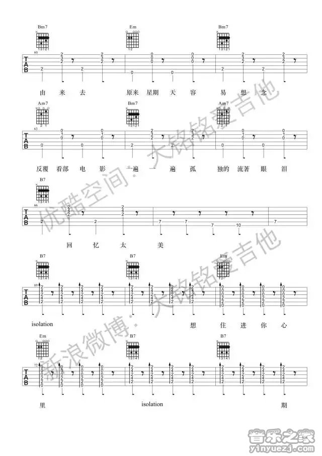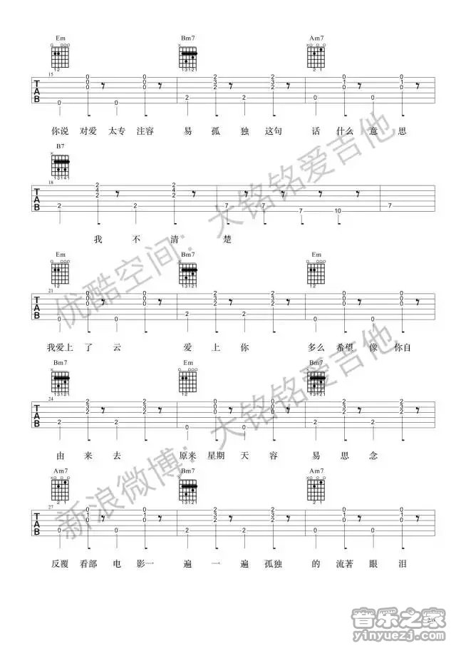 - 王大文《酸雨》吉他谱_吉他弹唱谱_YYZJ编配