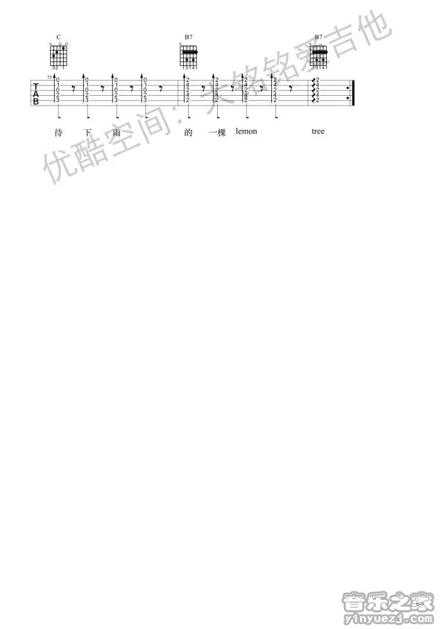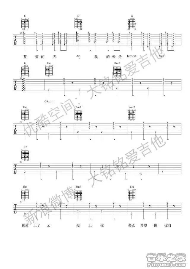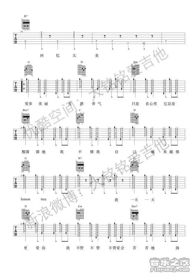 《柠檬树Lemon Tree》吉他谱_吉他弹唱谱_大铭铭编配