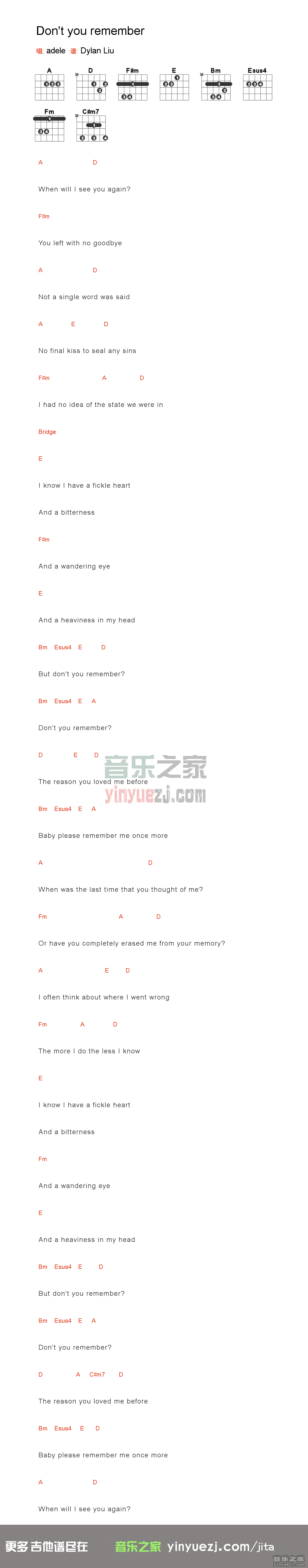 《Don't You Remember》吉他谱_吉他弹唱谱