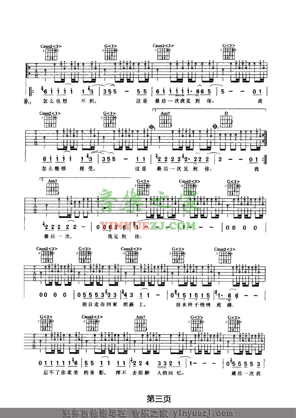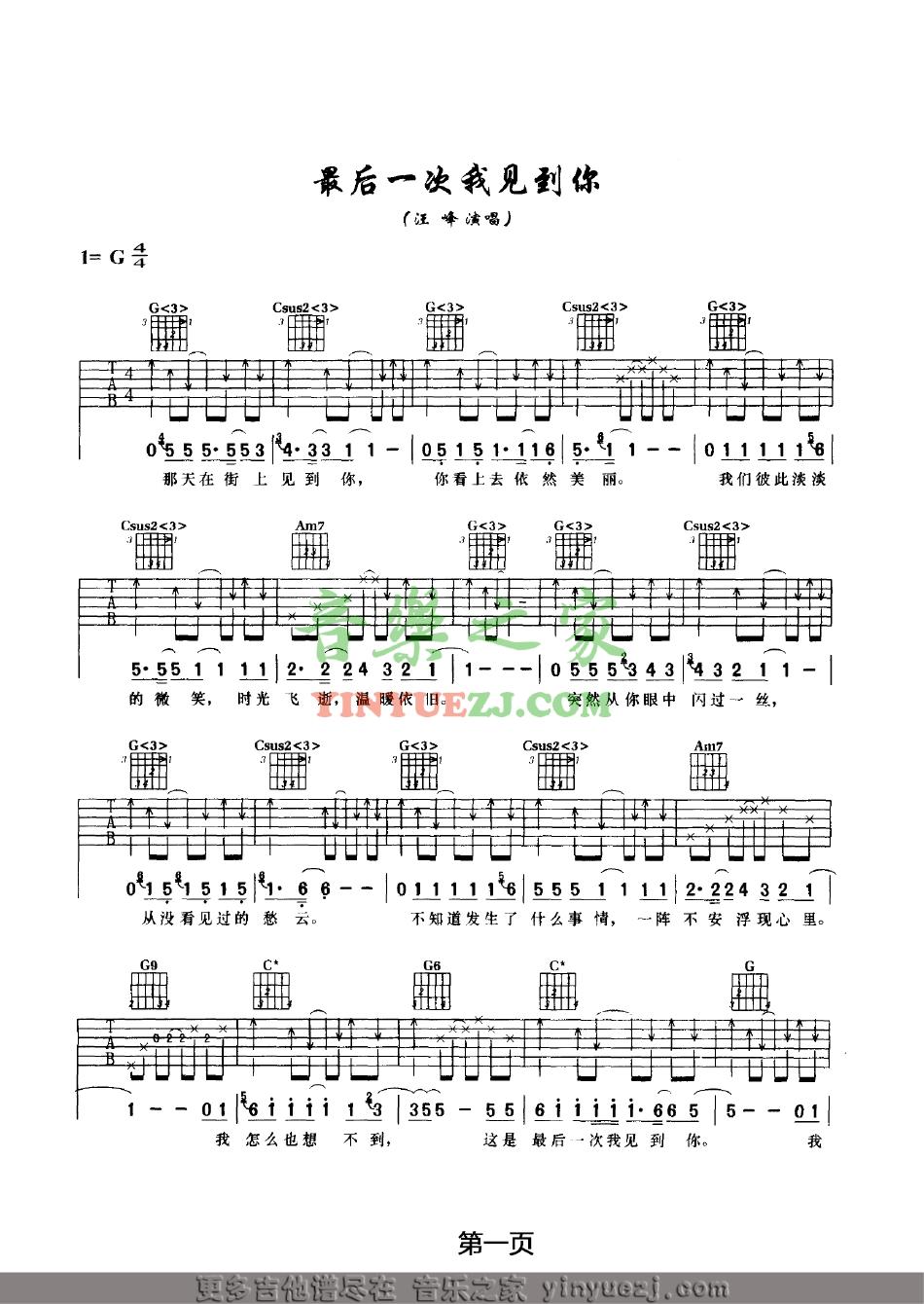 汪峰《最后一次我见到你》吉他谱,YYZJ编配出品,共有4张高清图谱。