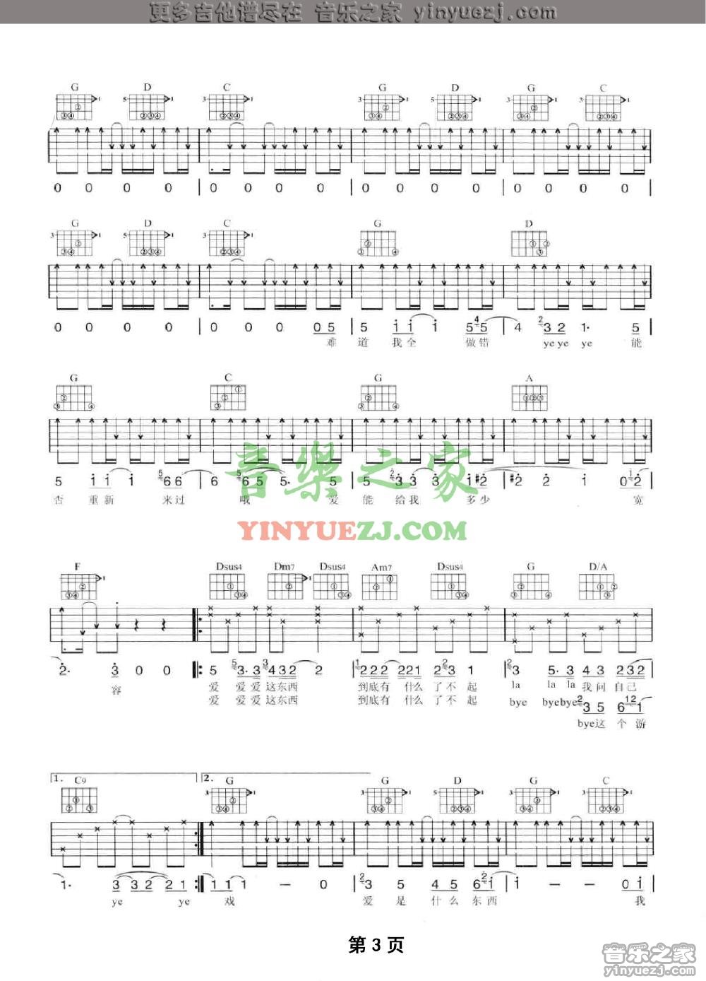 陶喆《爱是个什么东西》吉他谱_吉他弹唱谱_YYZJ编配