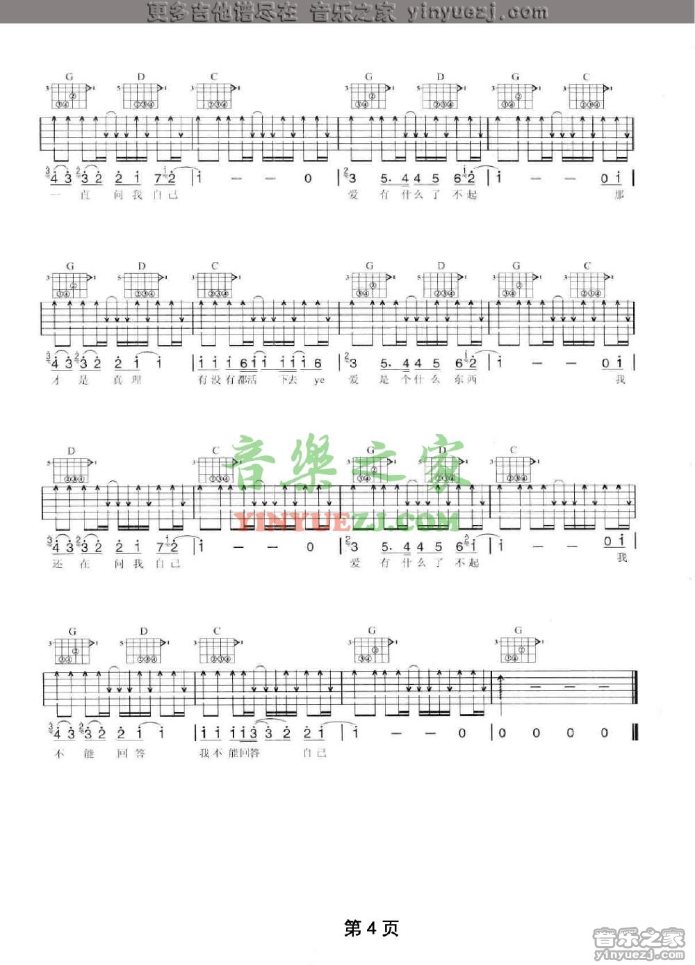 陶喆《爱是个什么东西》吉他谱,YYZJ编配出品,共有4张高清图谱。