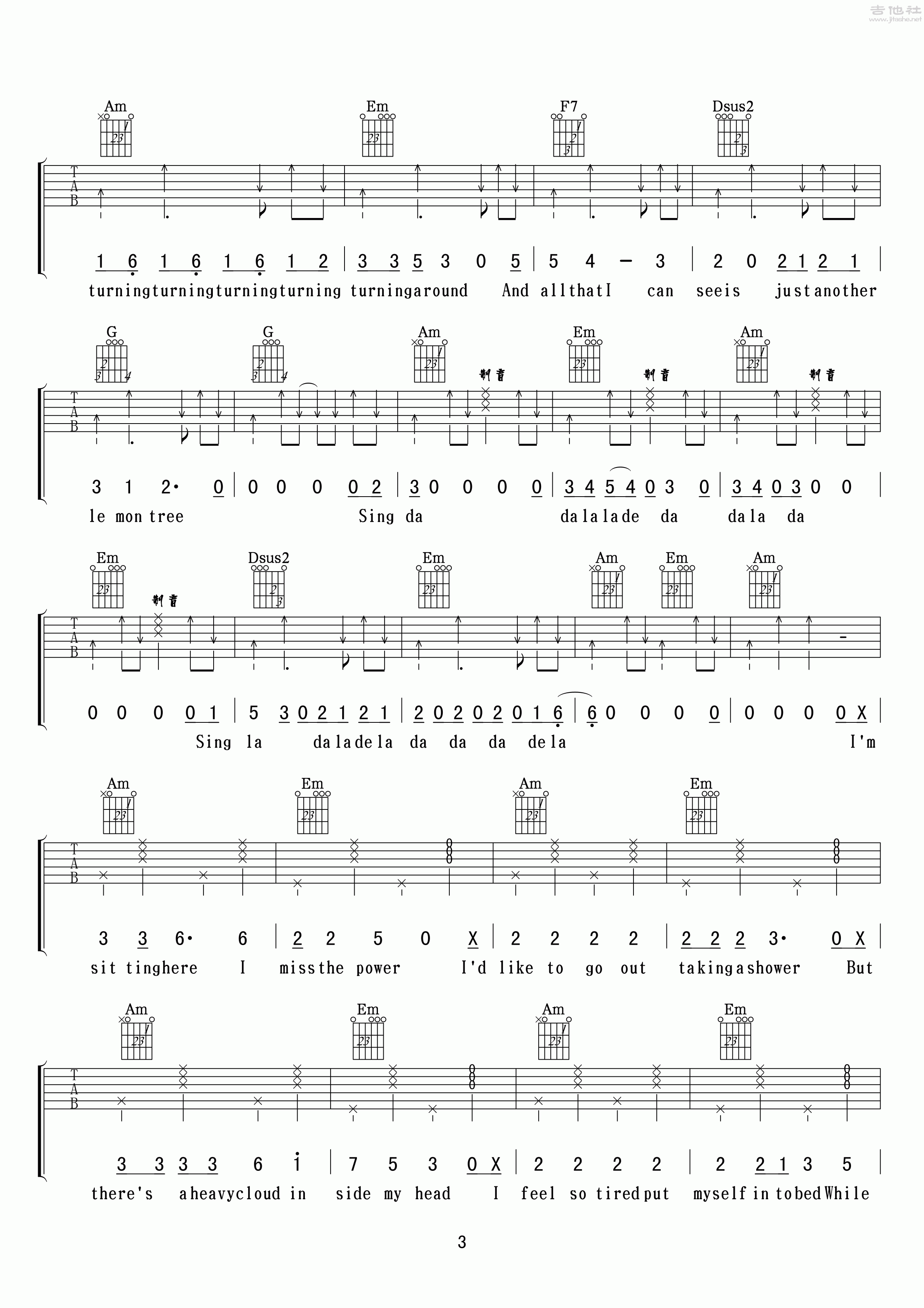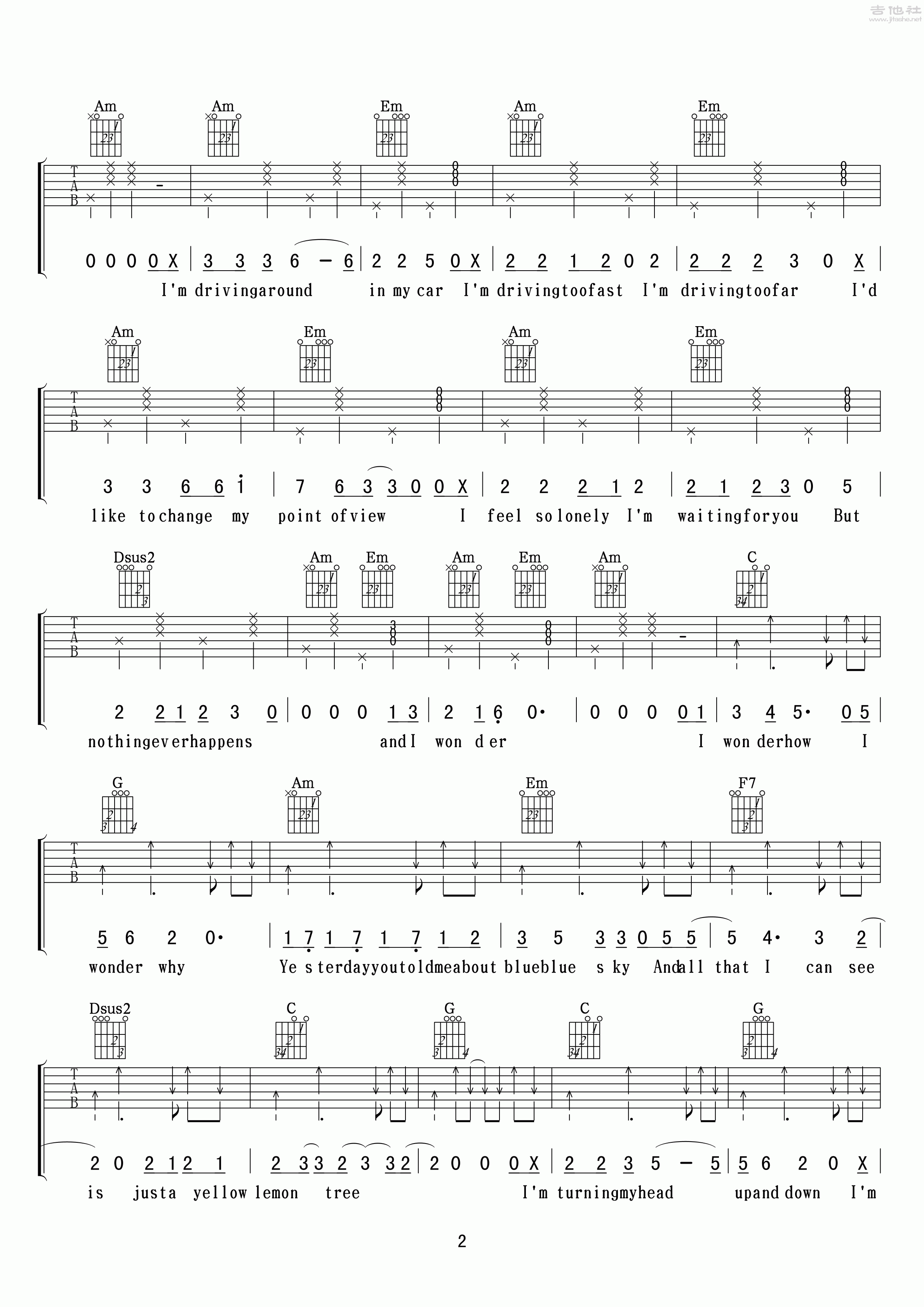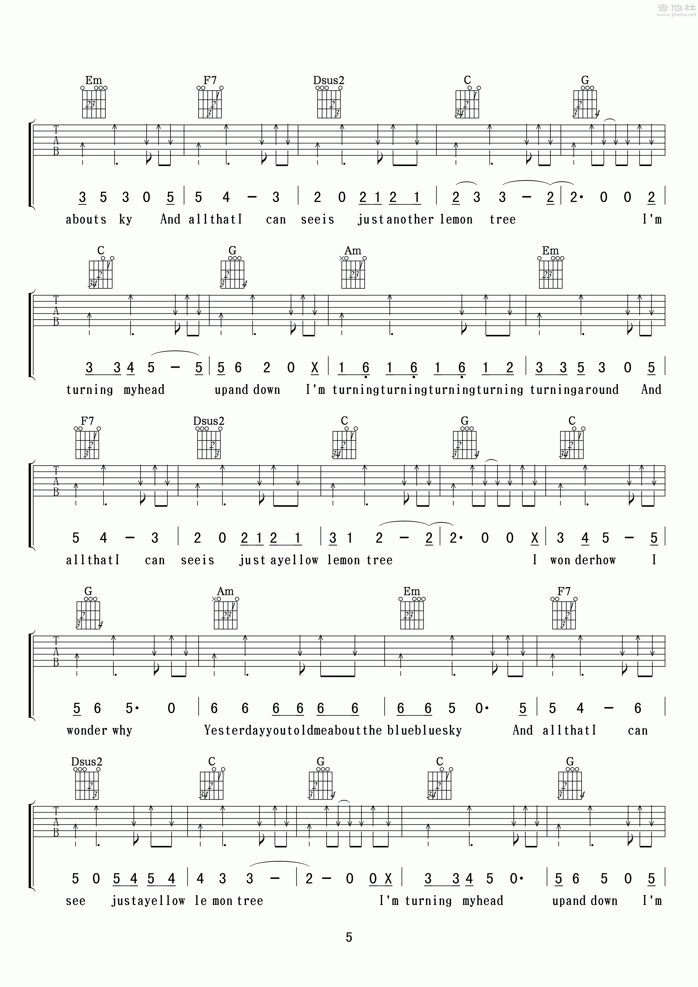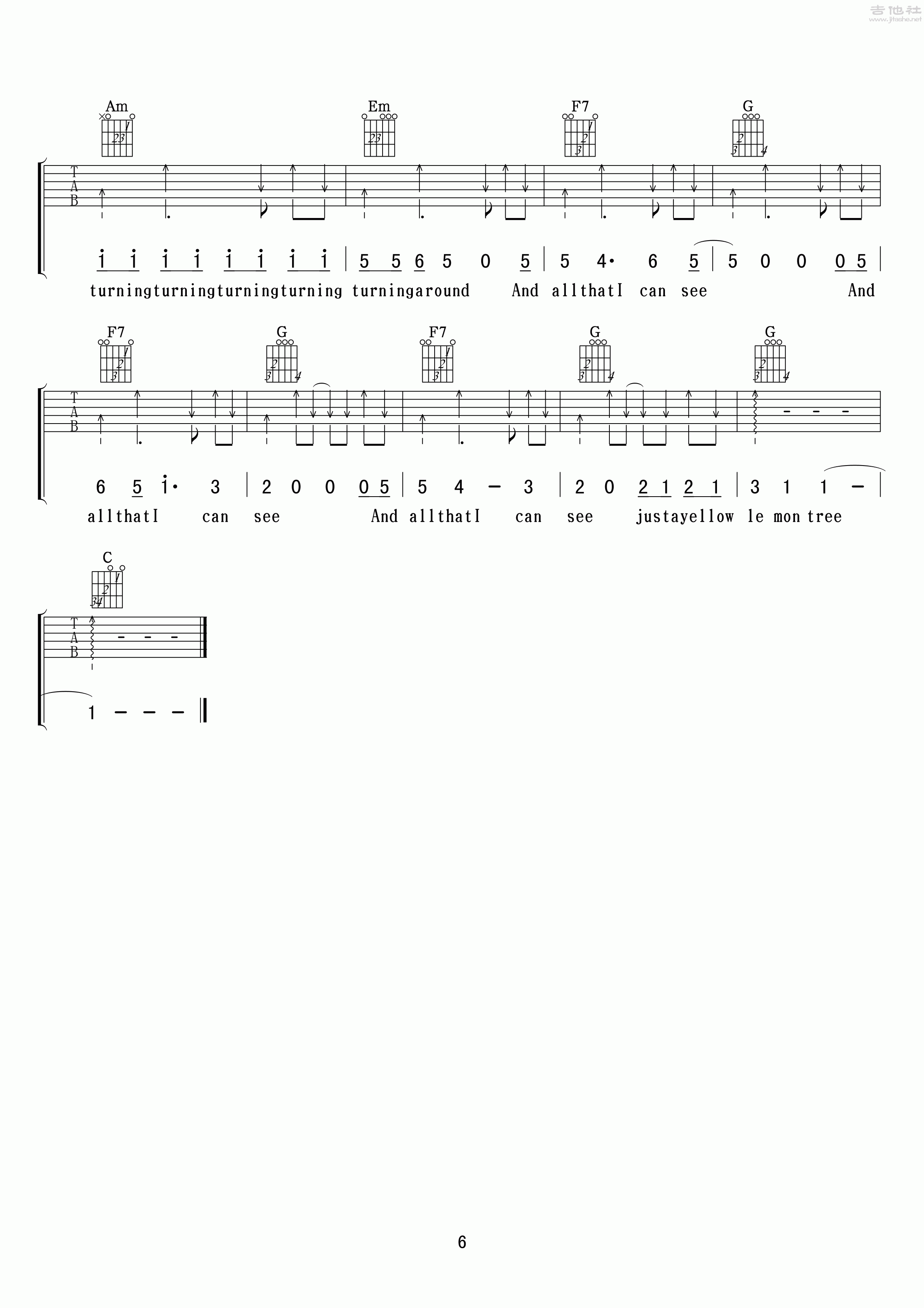 悦龄《LemonTree(柠檬树)》吉他谱,小叶歌编配出品,共有6张高清图谱。
