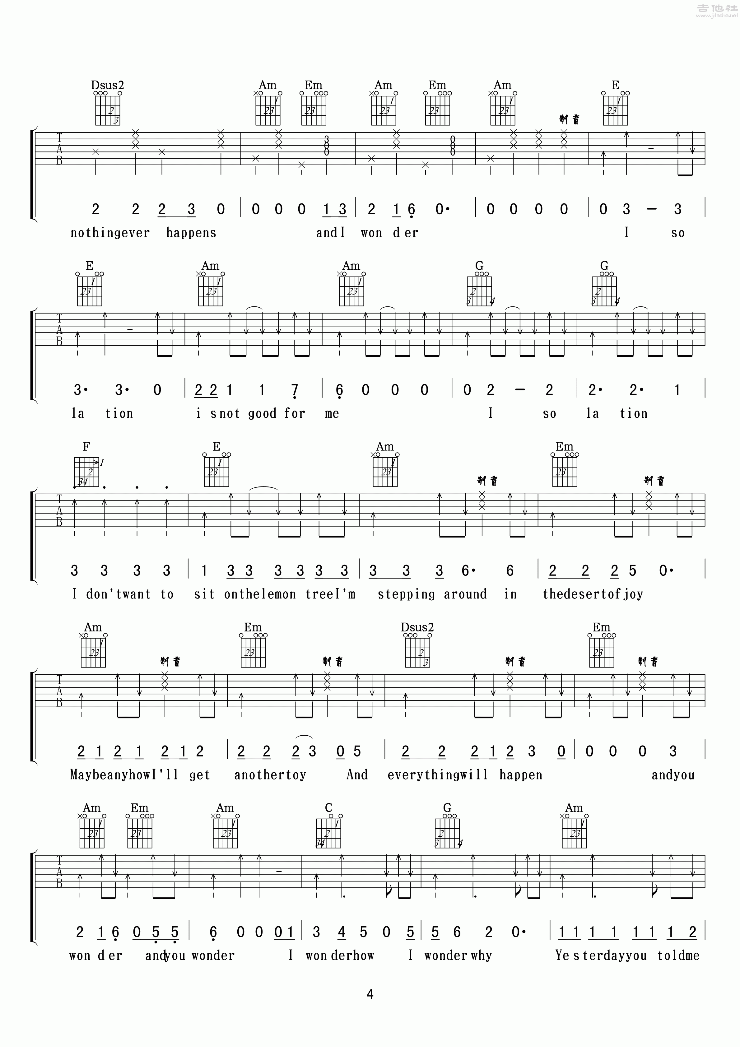 悦龄《Lemon Tree(柠檬树)》吉他谱_吉他弹唱谱_小叶歌编配