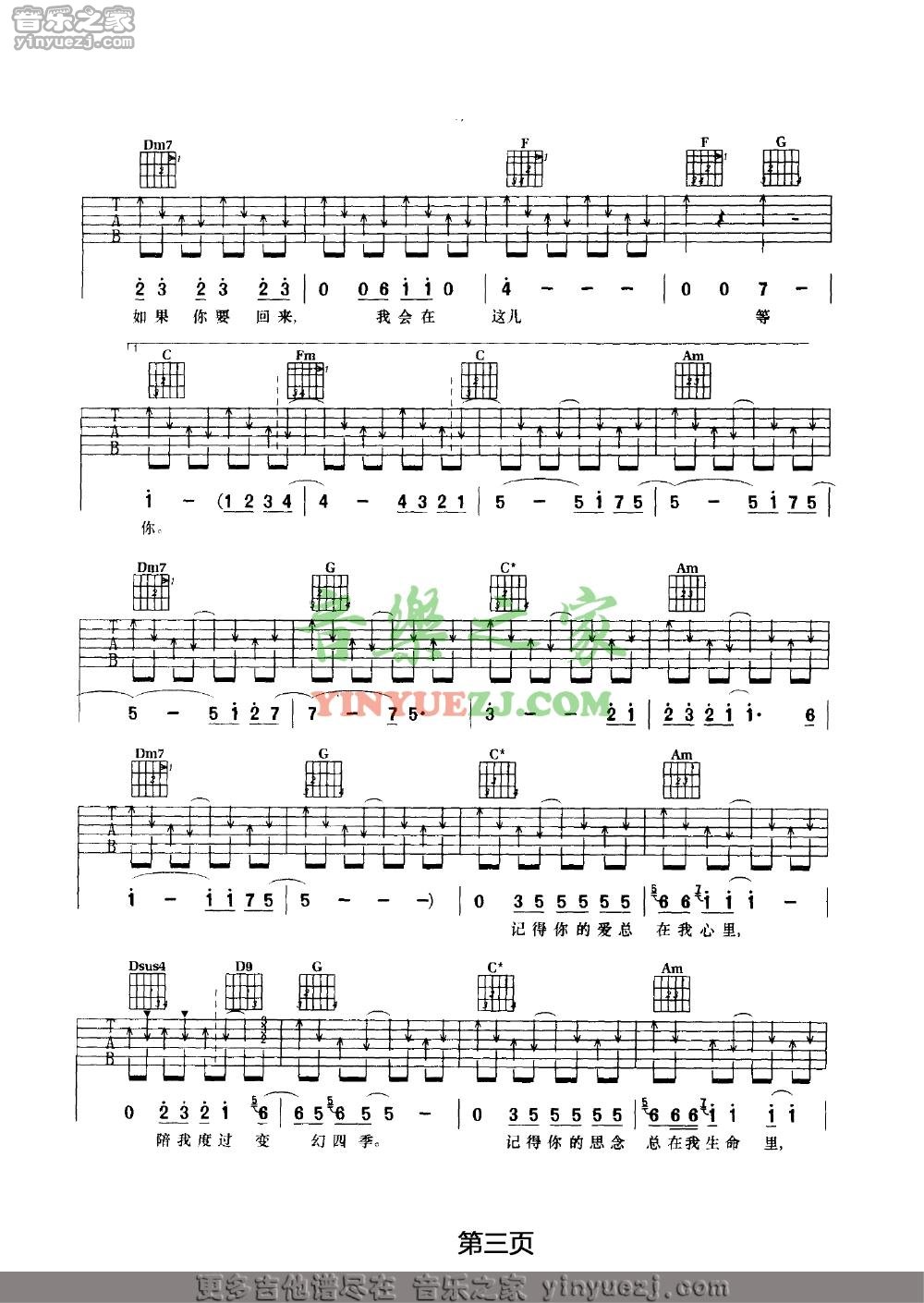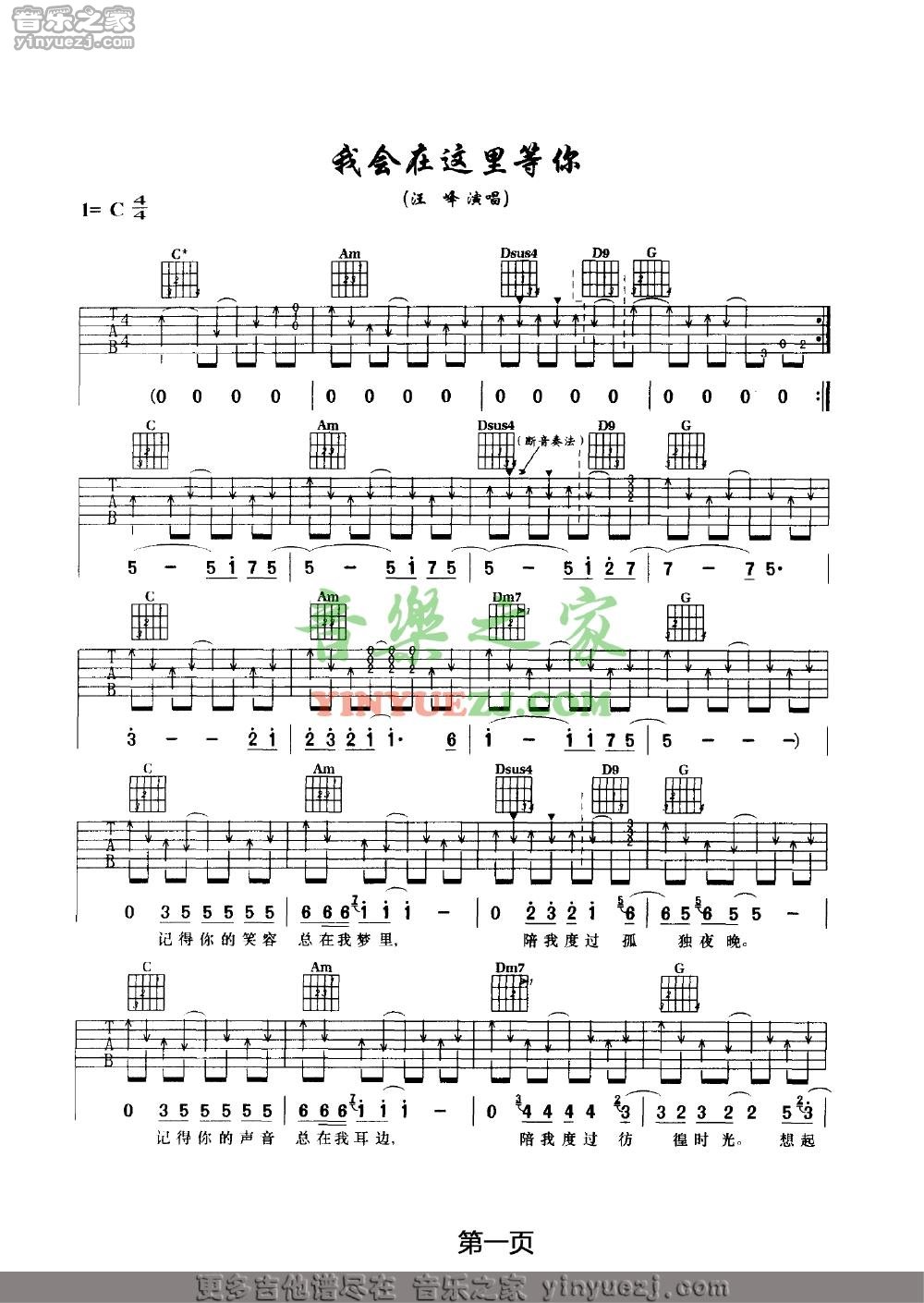 汪峰《我会在这里等你》吉他谱_吉他弹唱谱_YYZJ编配