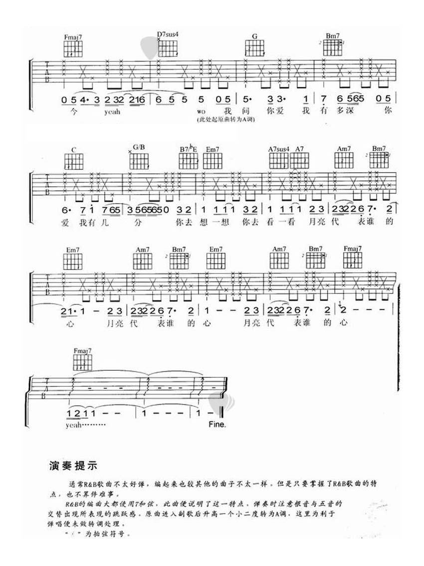 陶喆《月亮代表谁的心》吉他谱_吉他弹唱谱_羽佳编配