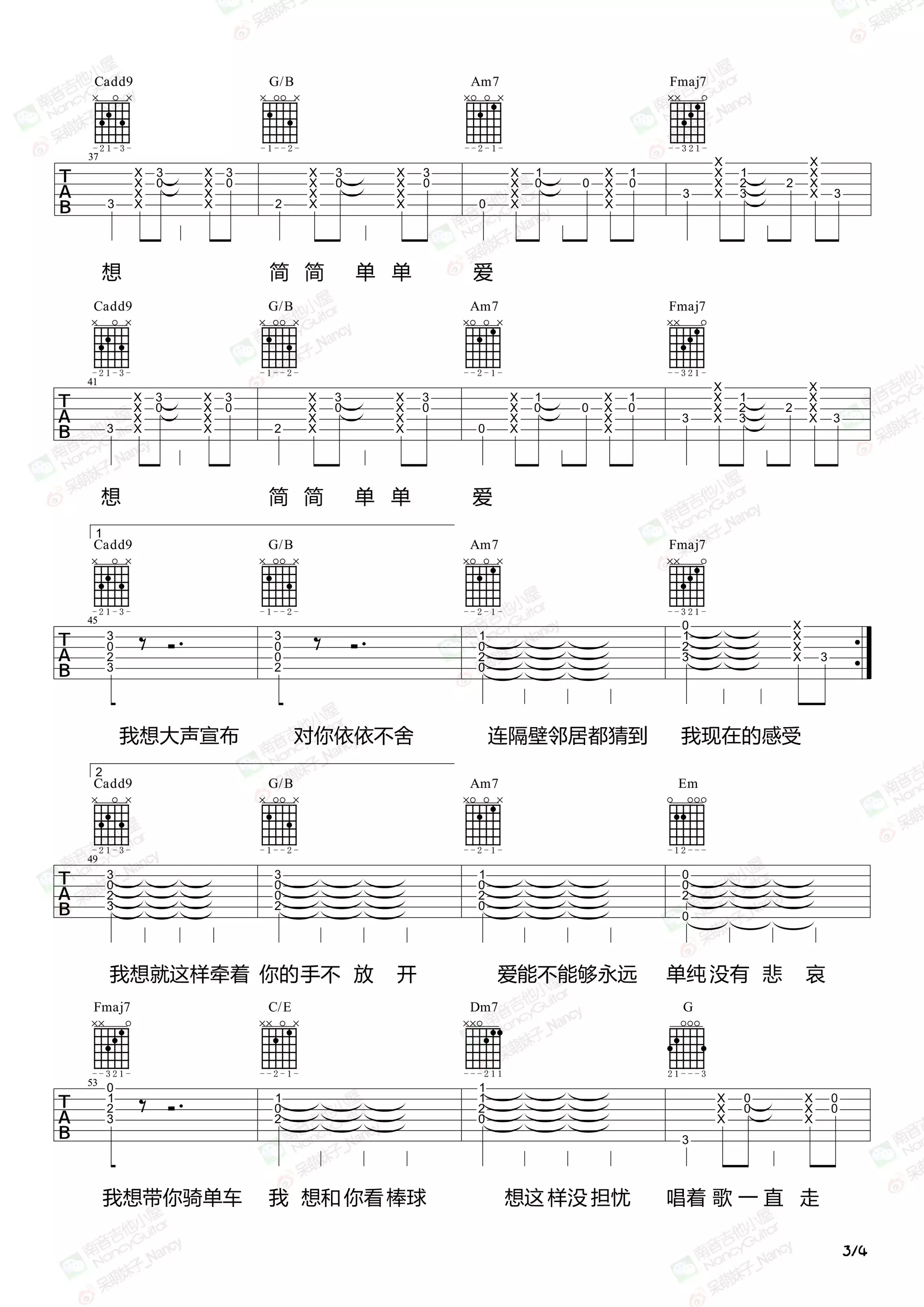 周杰伦 《简单爱》吉他谱_吉他弹唱谱_南音吉他编配
