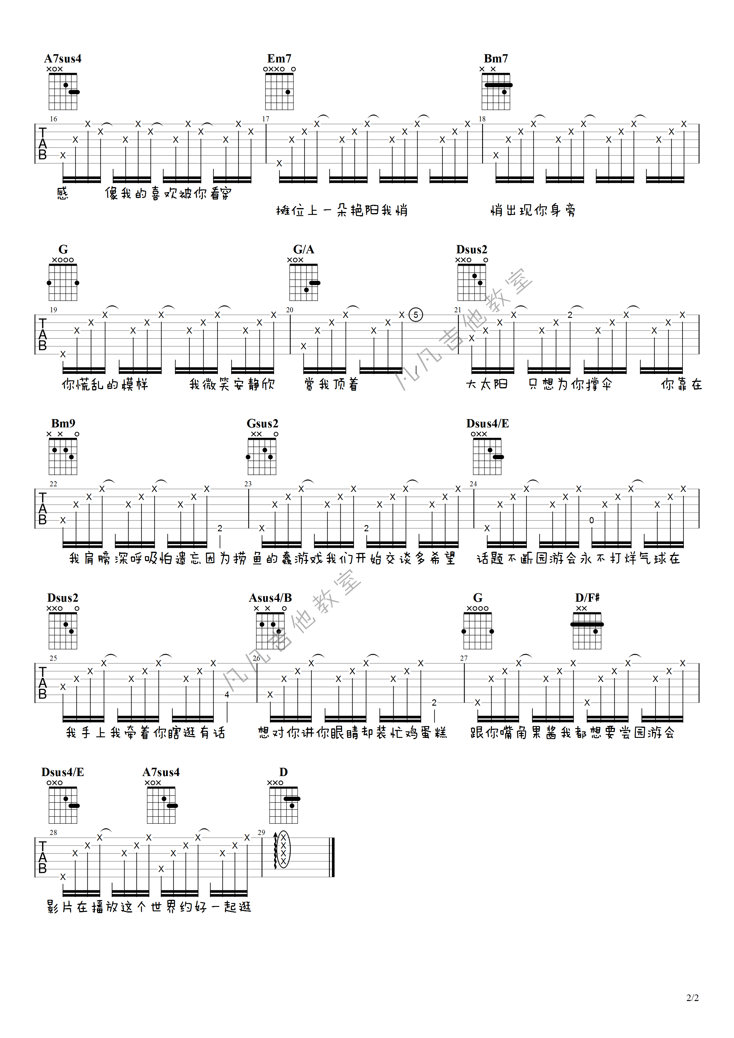 - 周杰伦《星晴》吉他谱_吉他弹唱谱_大树音乐屋编配