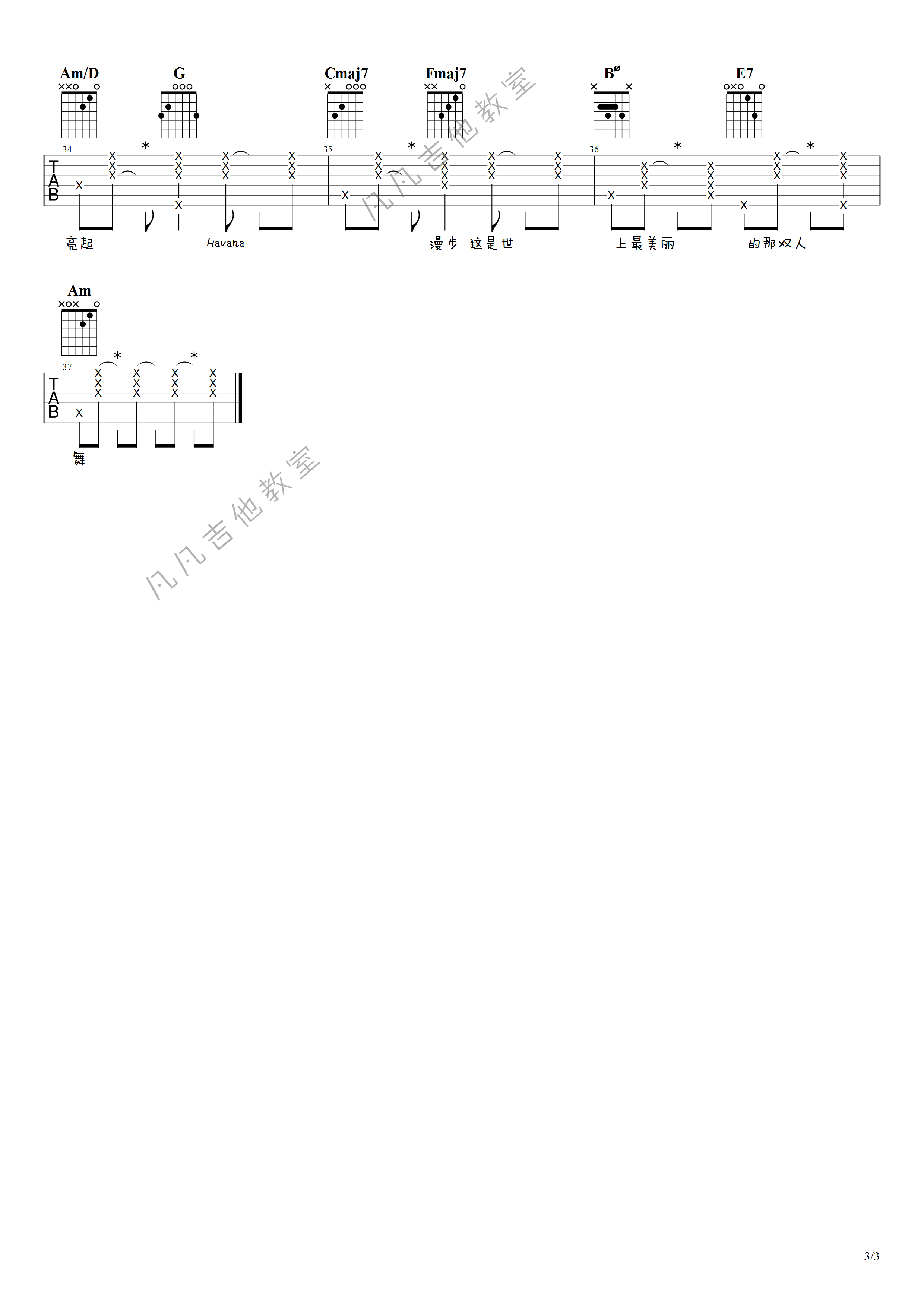 周杰伦《mojito》吉他谱,共有3张高清图谱。