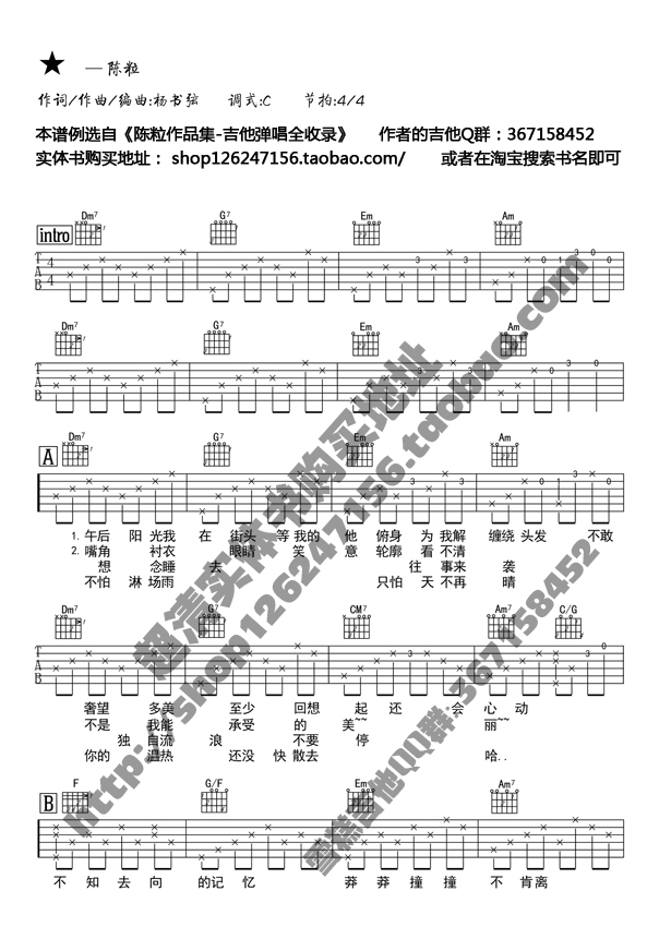 陈粒《★》吉他谱_吉他弹唱谱_YYZJ编配