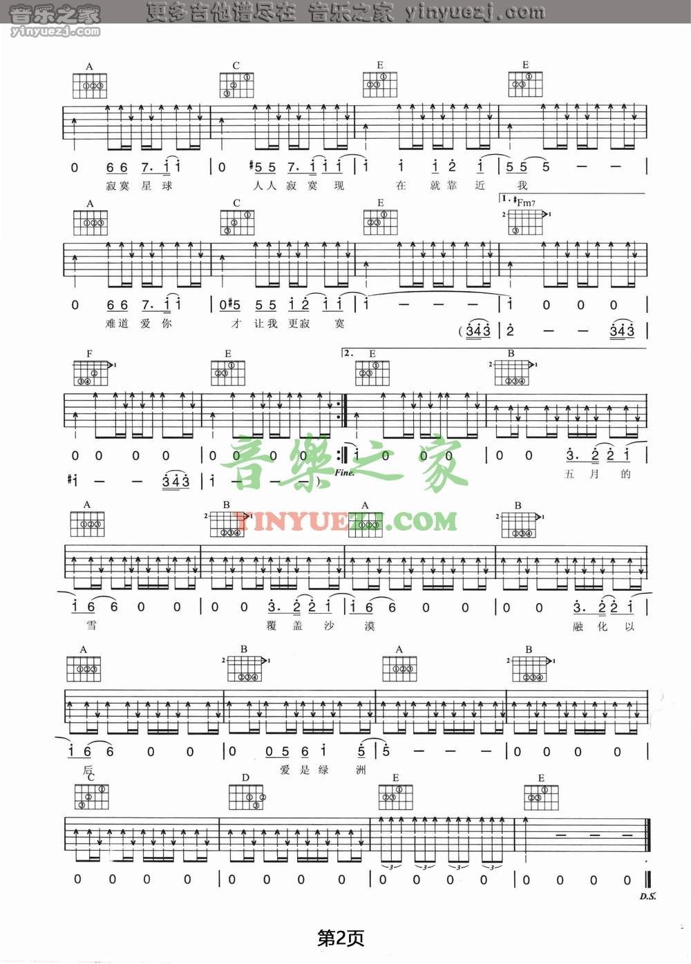 五月天《寂寞星球》吉他谱,YYZJ编配出品,共有2张高清图谱,免翻页排版设计。