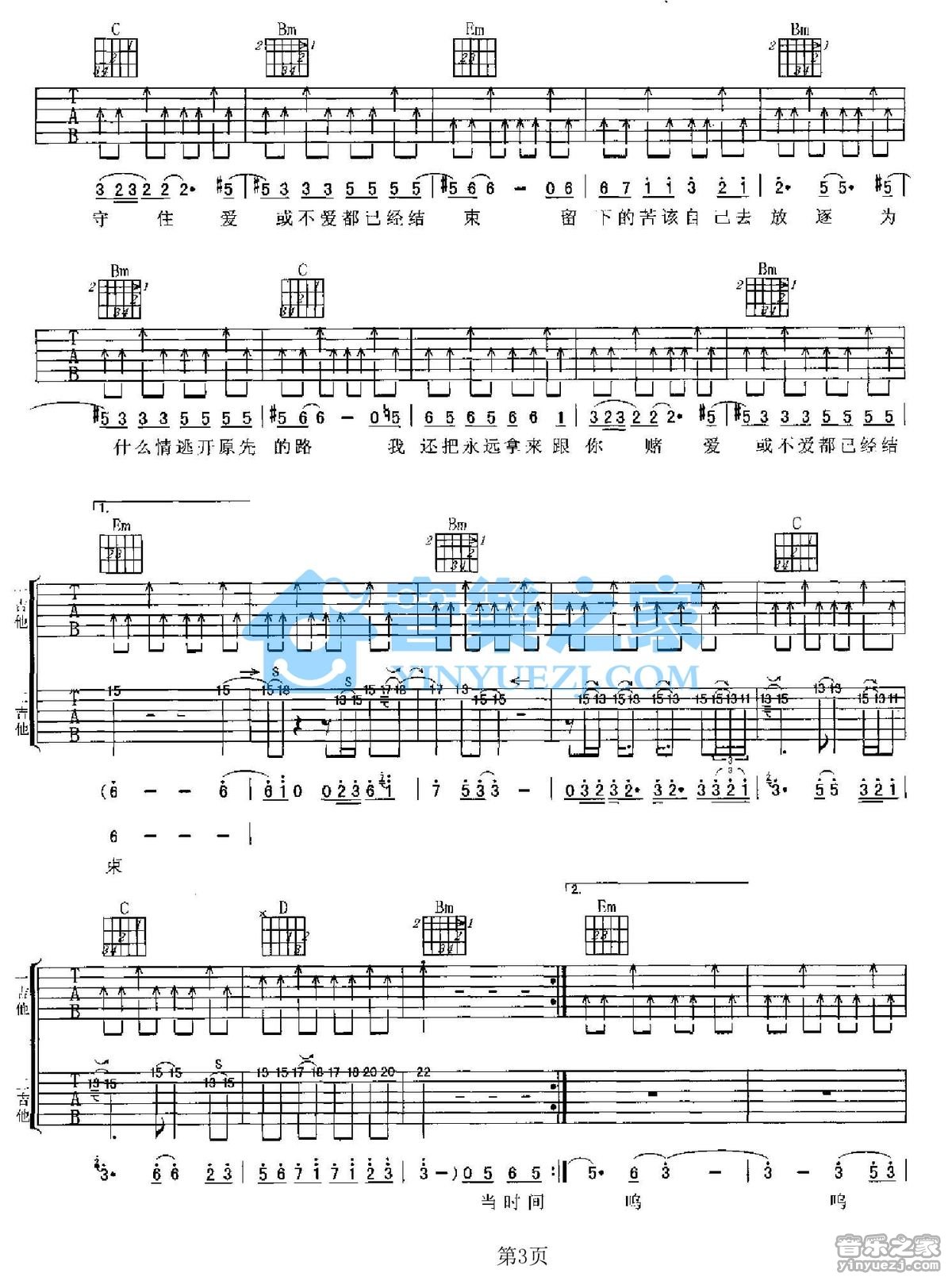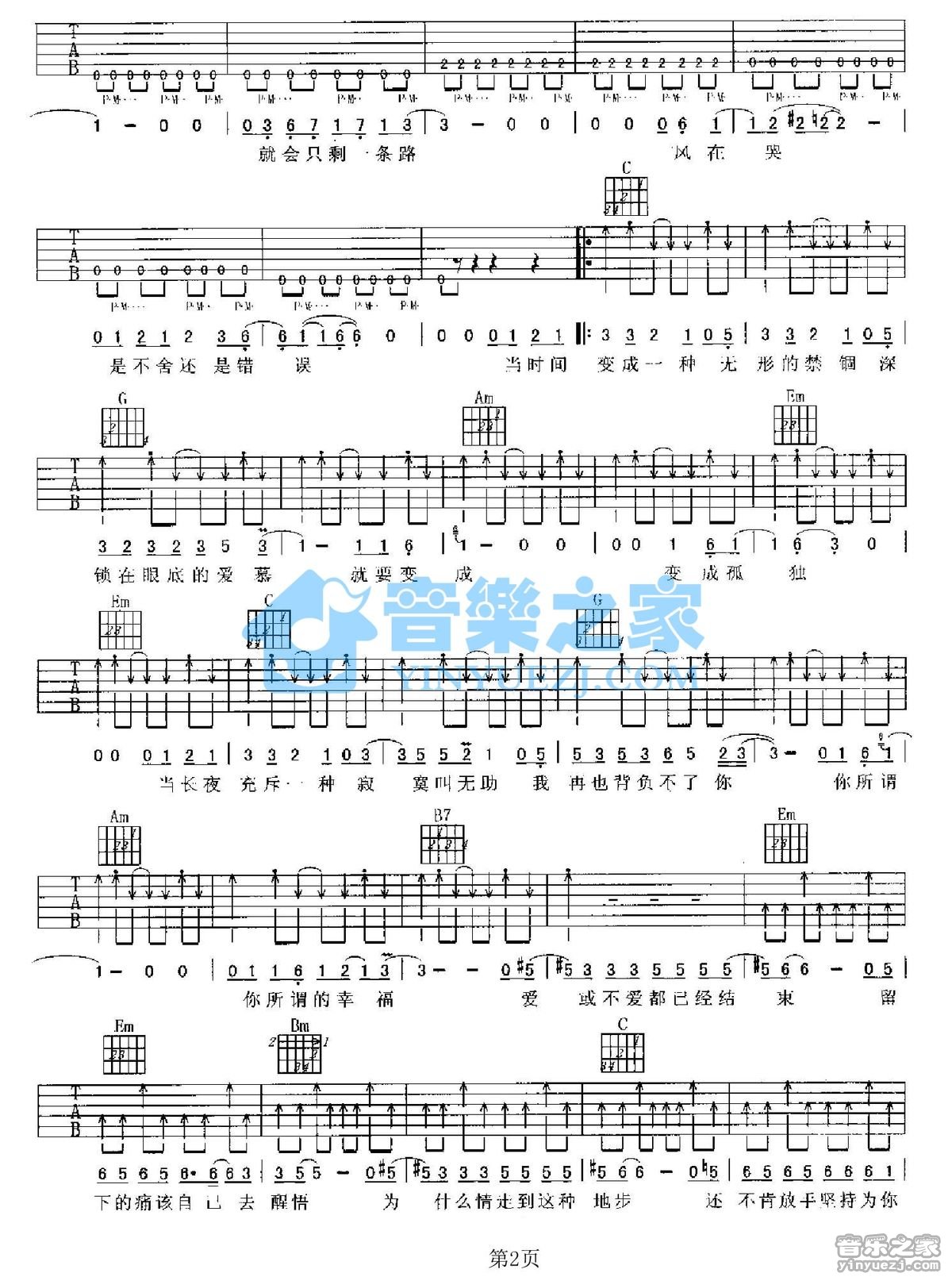 - 王大文《酸雨》吉他谱_吉他弹唱谱_YYZJ编配