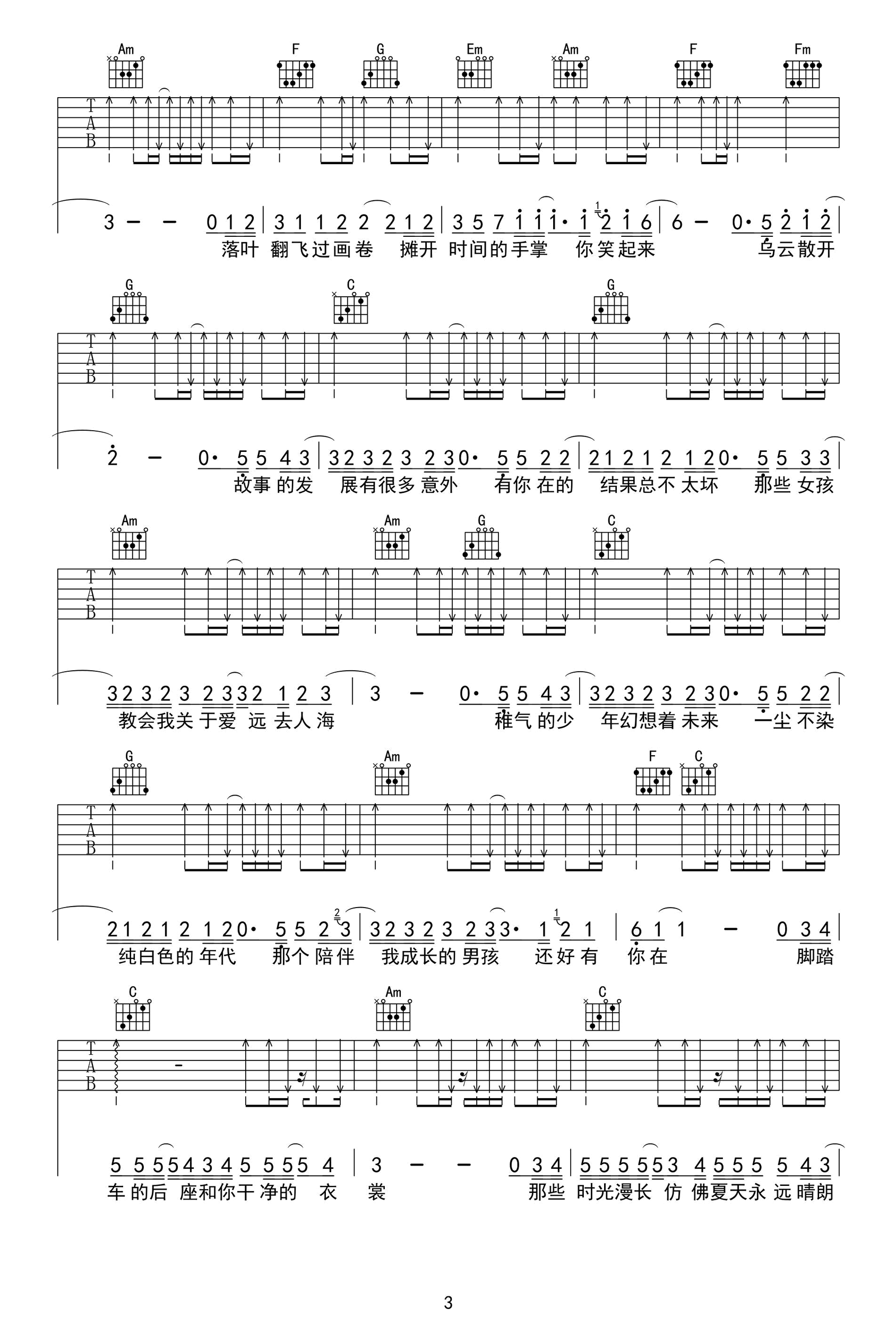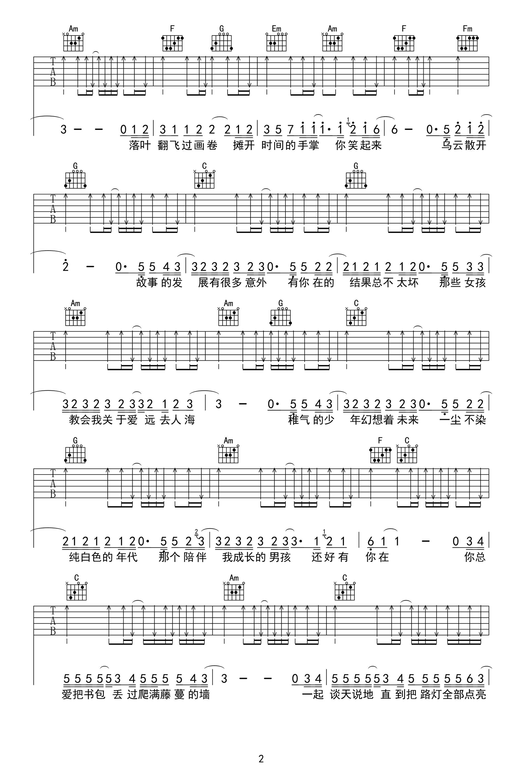 那个男孩吉他谱,汪苏泷演唱,C调弹唱谱,青春偶像剧《夏至未至》插曲,歌曲浅析:整首歌曲扫弦,需要注意扫弦音响效果的控制,避免杂音与六根弦全扫,控制扫弦力度。