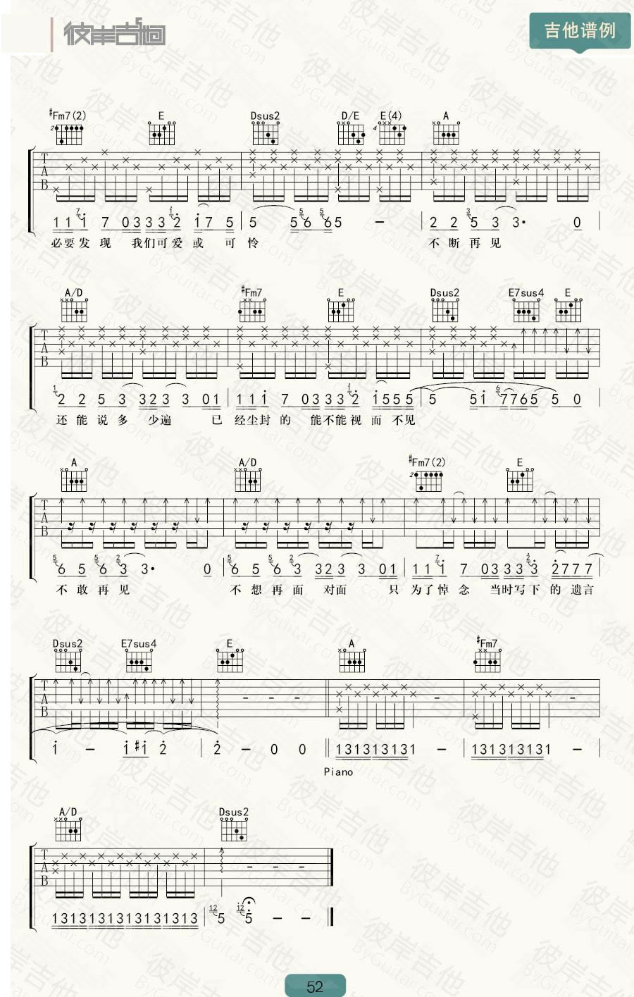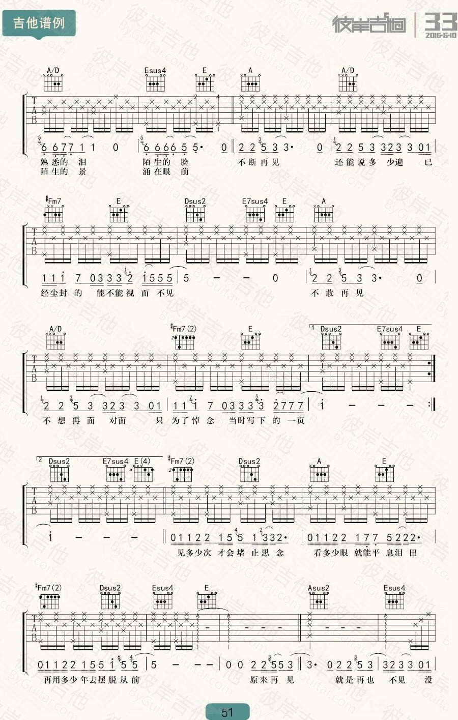 孙燕姿《在也不见》吉他谱_吉他弹唱谱_杨鑫编配