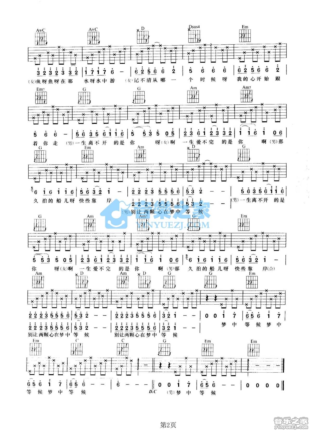 G调双吉他版黄鹤翔/冰玉《一生离不开的是你》吉他弹唱六线谱