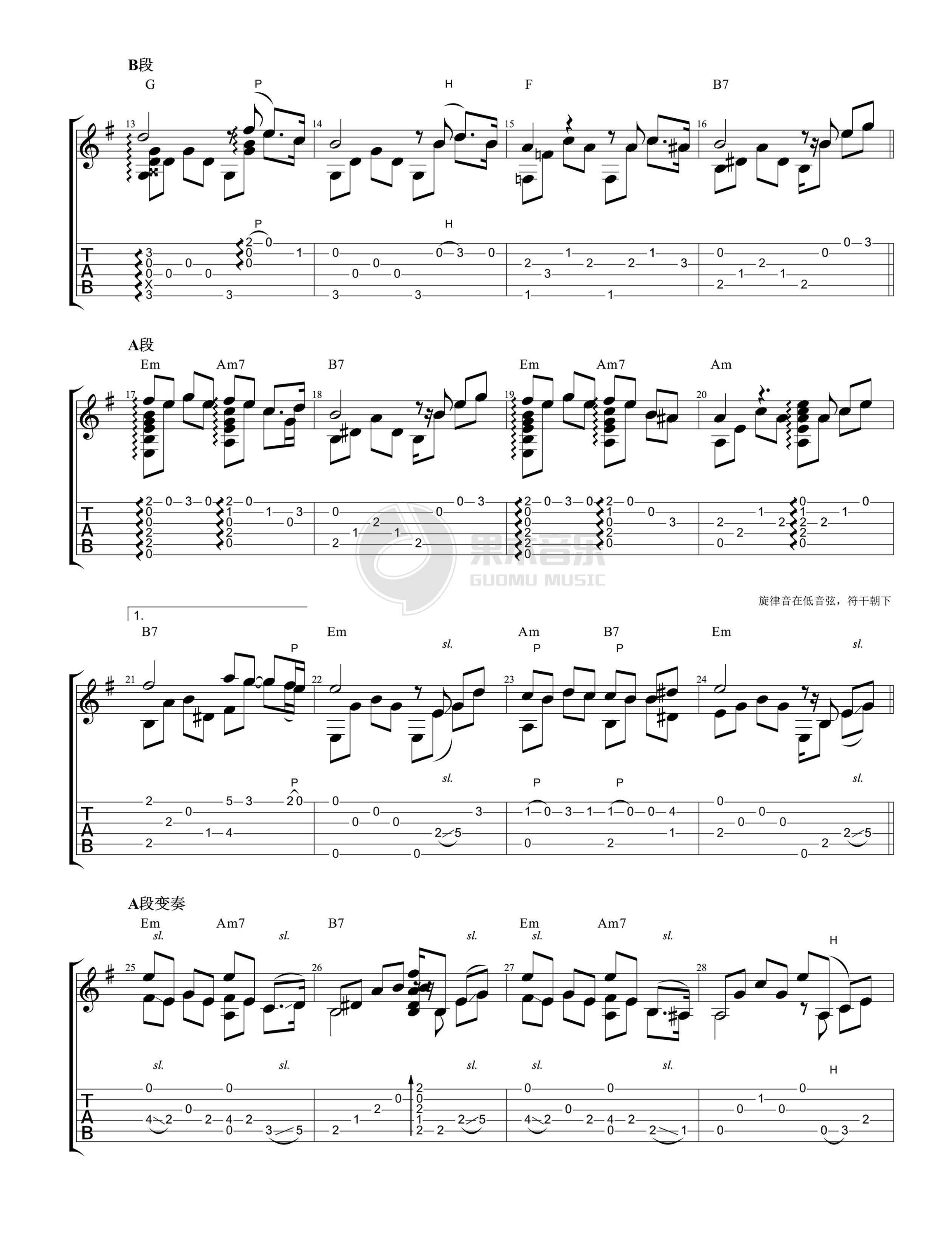 《Speak softly love》吉他谱_吉他弹唱谱_果木音乐编配