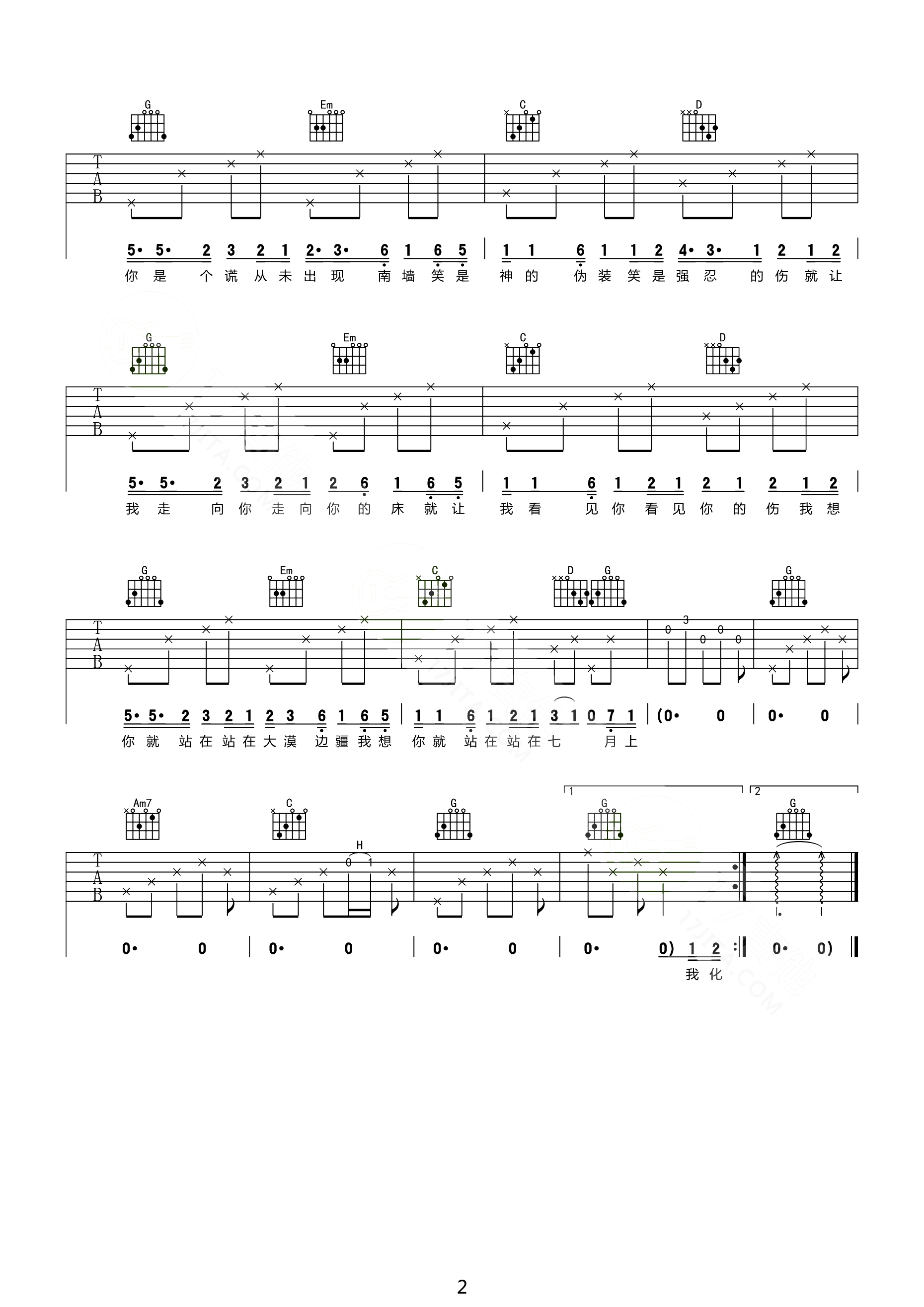 - Jam《七月上》吉他谱_吉他弹唱谱