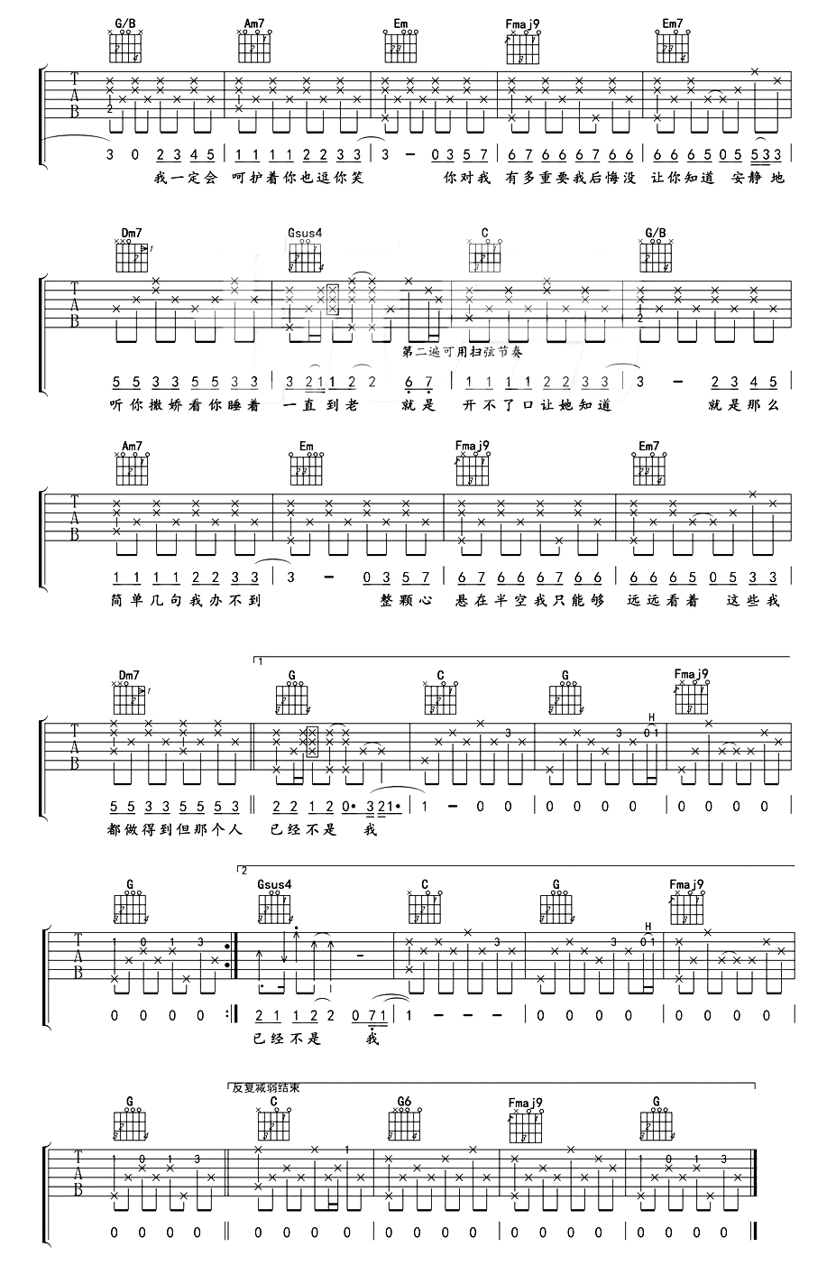 - 周杰伦《甜甜的》吉他谱_吉他弹唱谱_山山吉他编配
