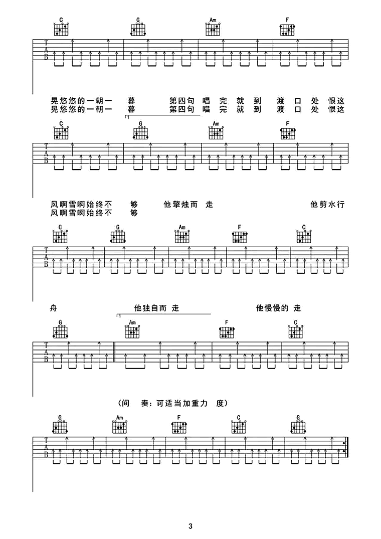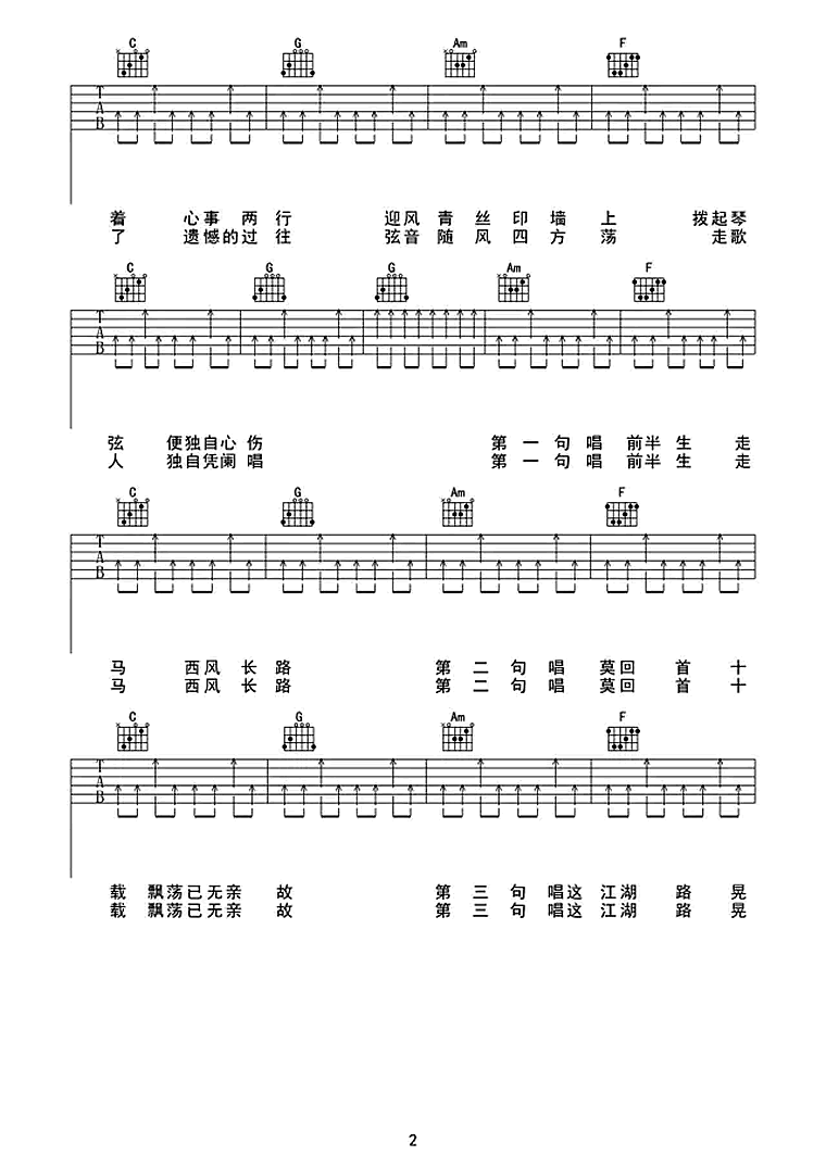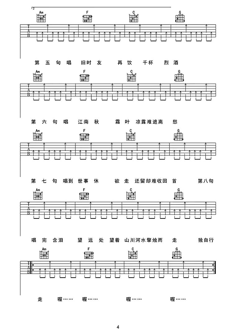 暗杠《走歌人》吉他谱_吉他弹唱谱_任风远编配