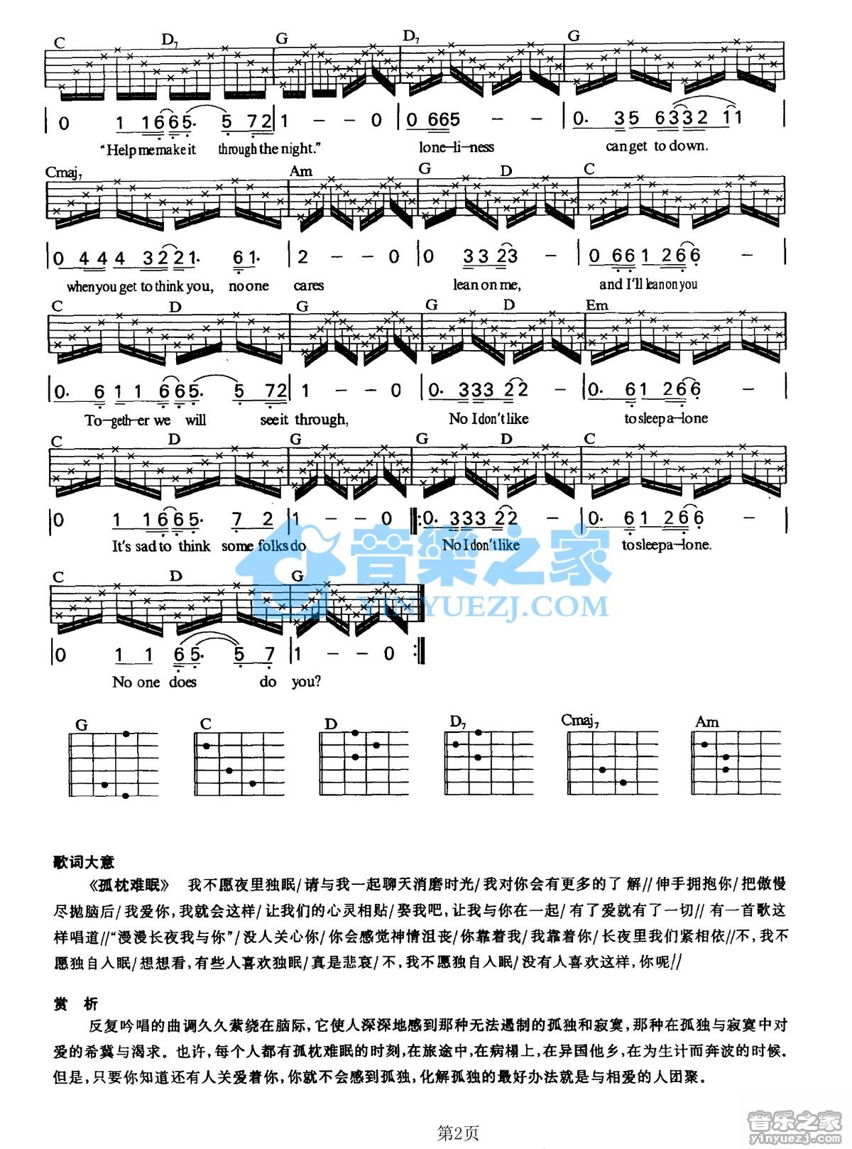 《I Dont Like To Sleep Alone》吉他谱_吉他弹唱谱_YYZJ编配