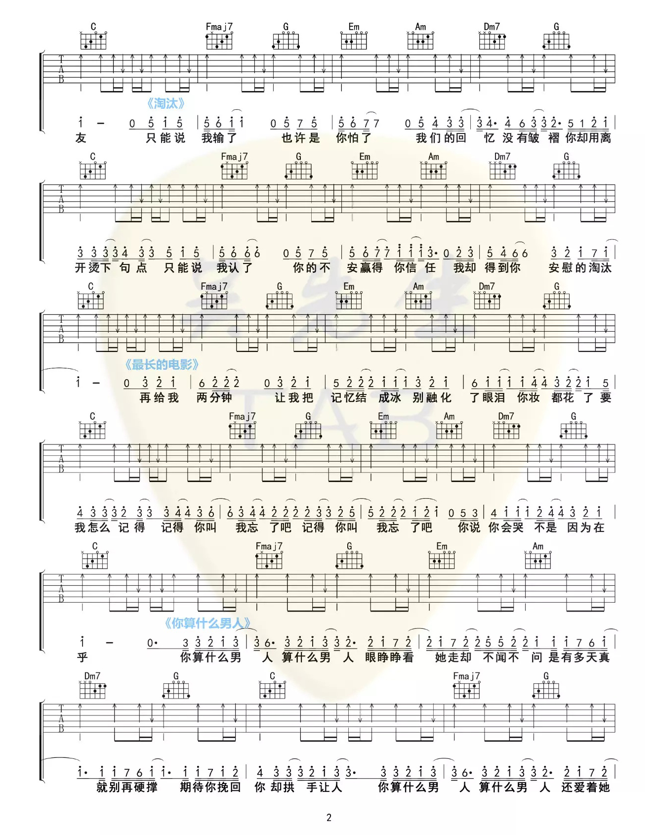 - 周杰伦《算什么男人》吉他谱_吉他弹唱谱_罗翔StevenLaw编配