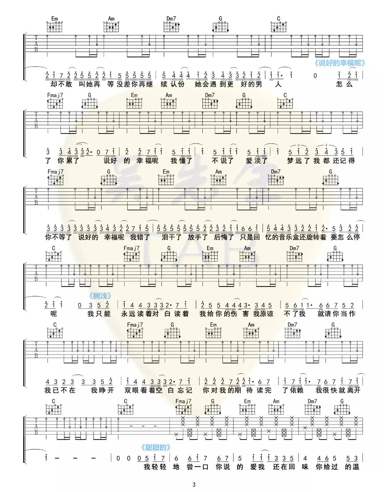 - 周杰伦《甜甜的》吉他谱_吉他弹唱谱_山山吉他编配