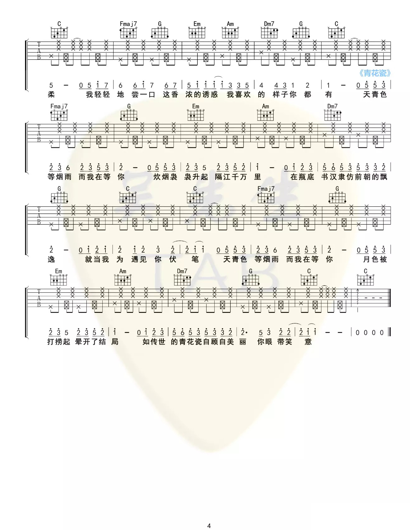 - 周杰伦《蒲公英的约定》吉他谱_吉他弹唱谱_果木音乐编配