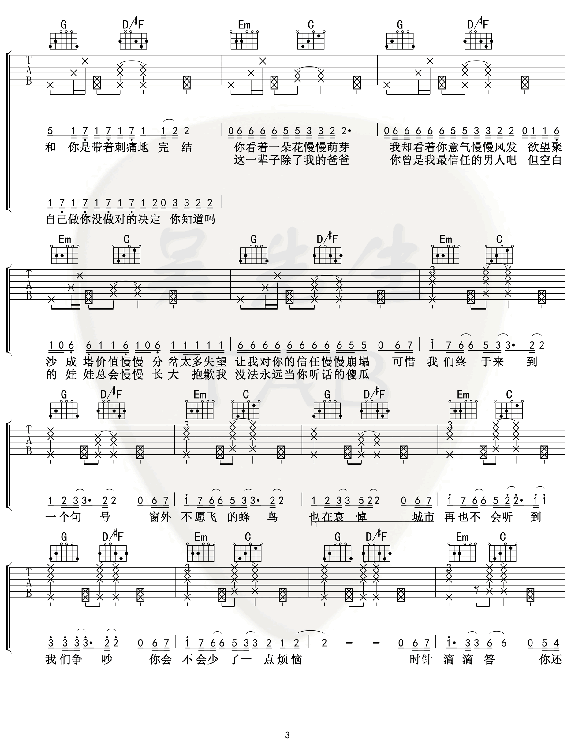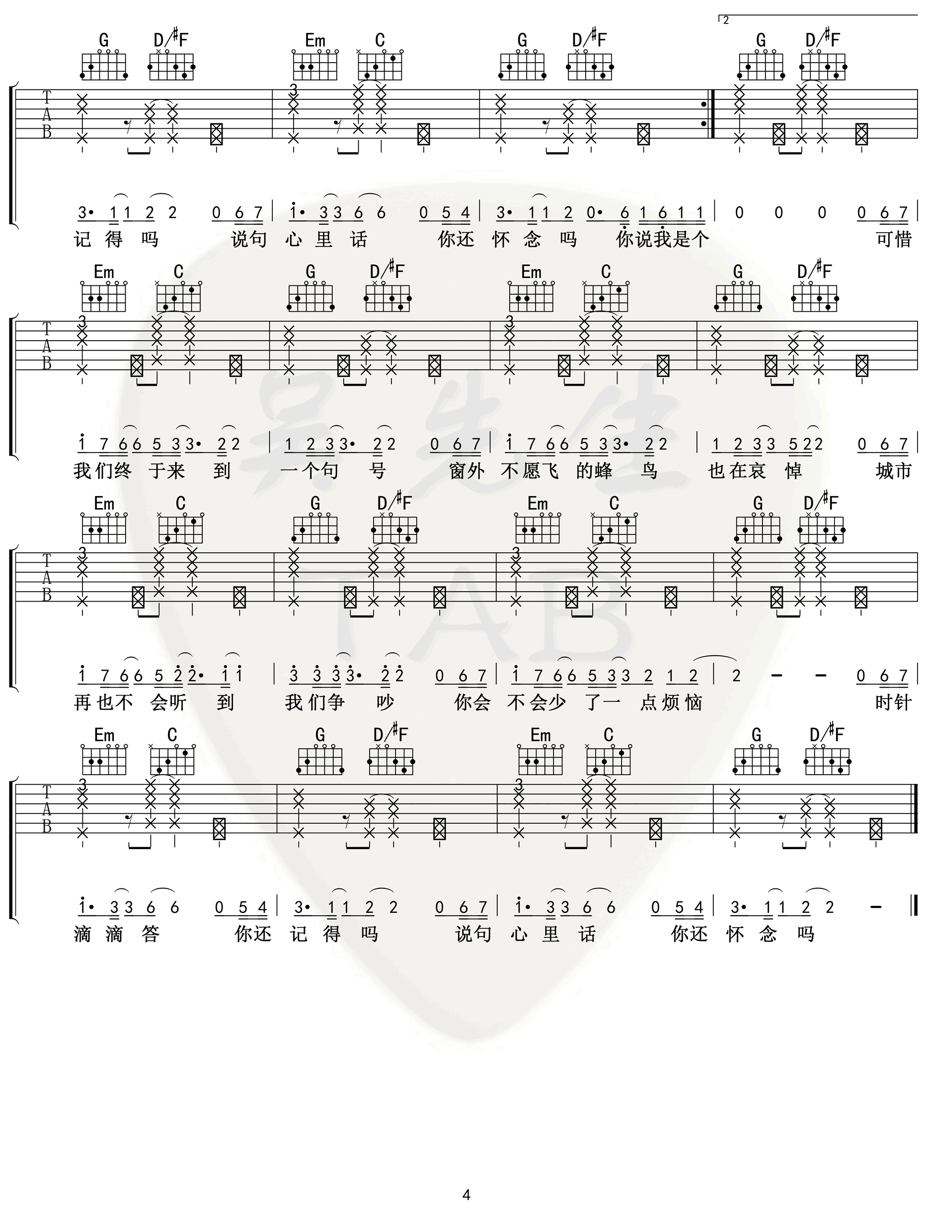 句号 吉他谱 邓紫棋