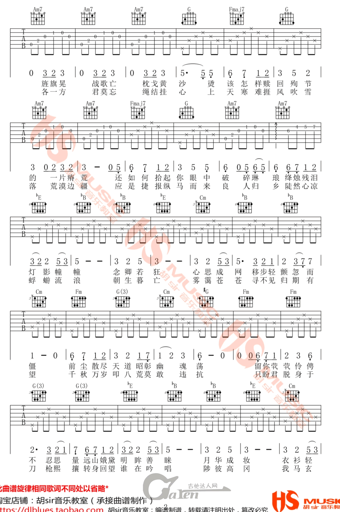 - 陈鸿宇《额尔古纳》吉他谱_吉他弹唱谱