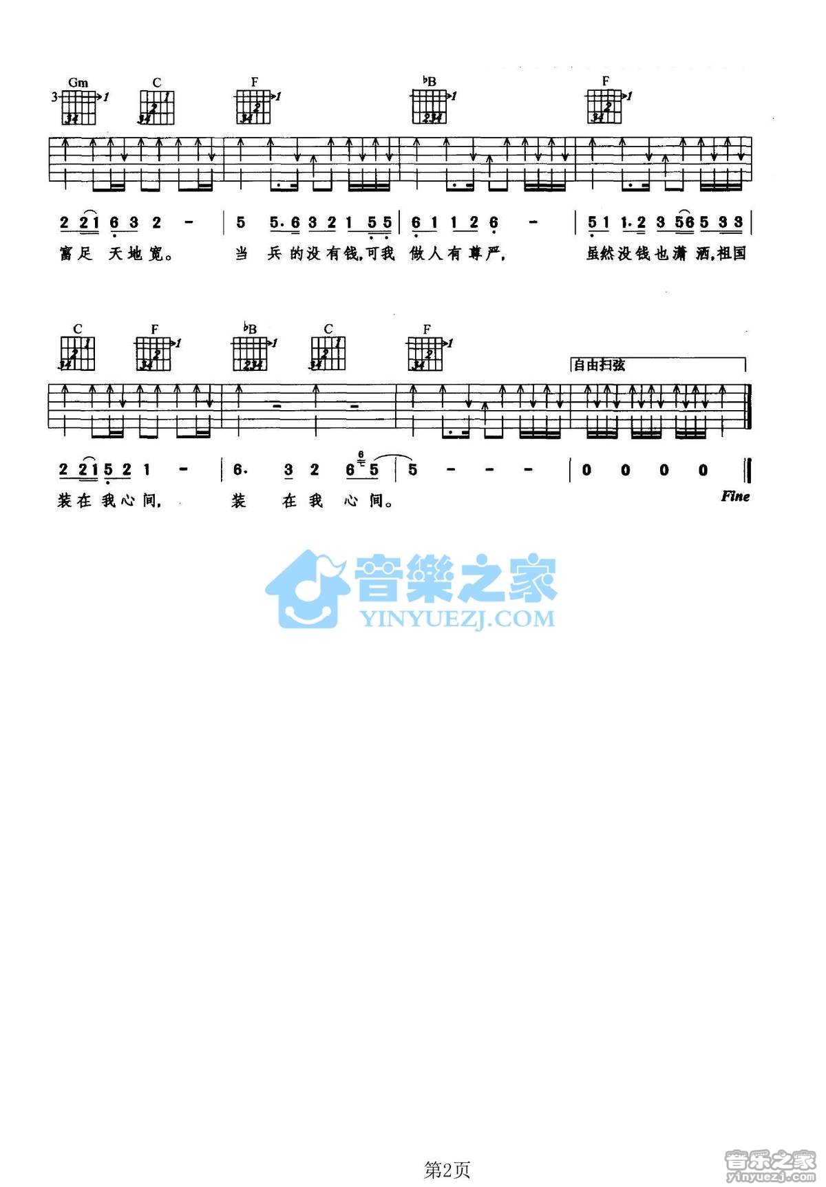 F调版高歌《没钱也潇洒》吉他弹唱六线谱