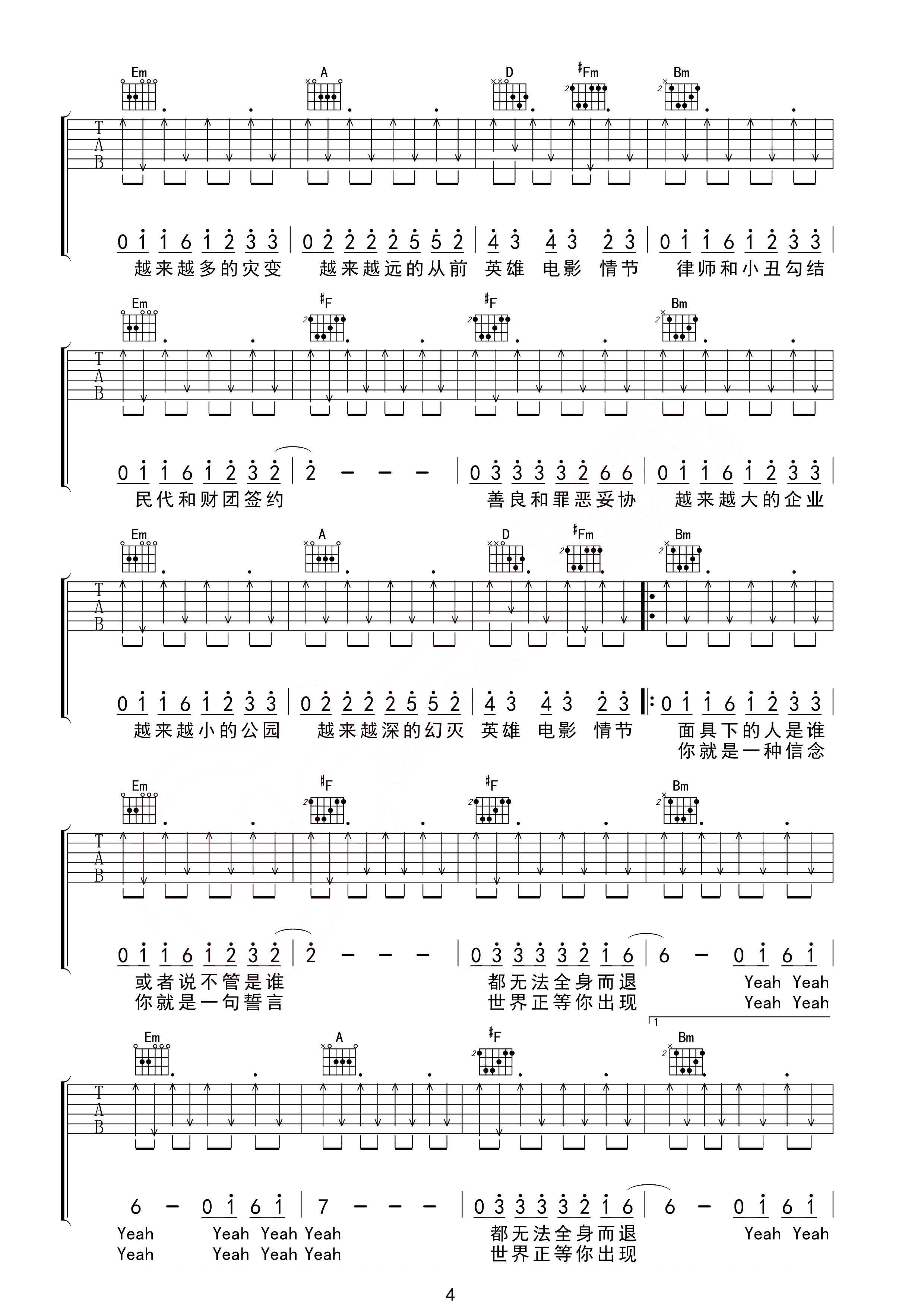 林俊杰/五月天《黑暗骑士》吉他谱_吉他弹唱谱_无限延音编配