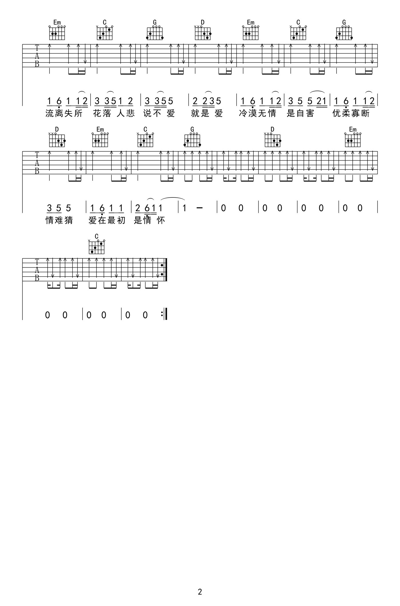 - Jam《我也不知为何留下了眼泪》吉他谱 C调六线谱