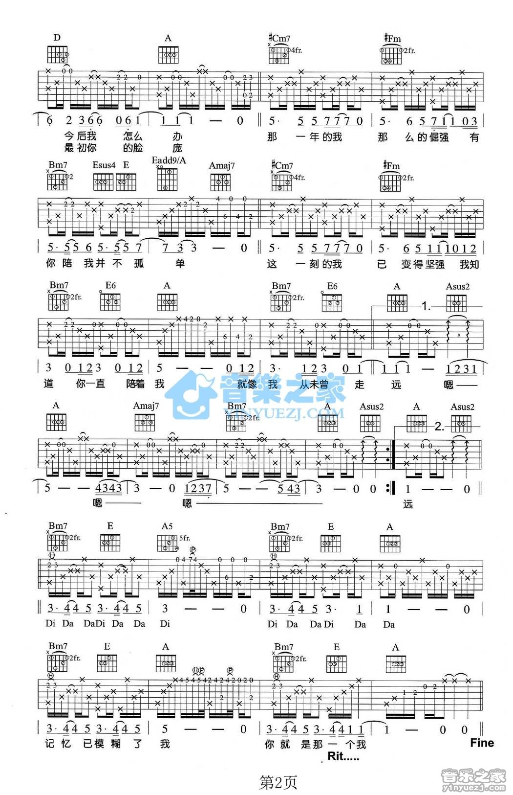 曹方《纪念册》吉他谱_吉他弹唱谱_YYZJ编配