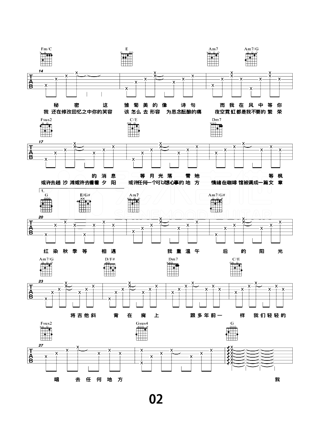- 周杰伦《星晴》吉他谱_吉他弹唱谱_大树音乐屋编配