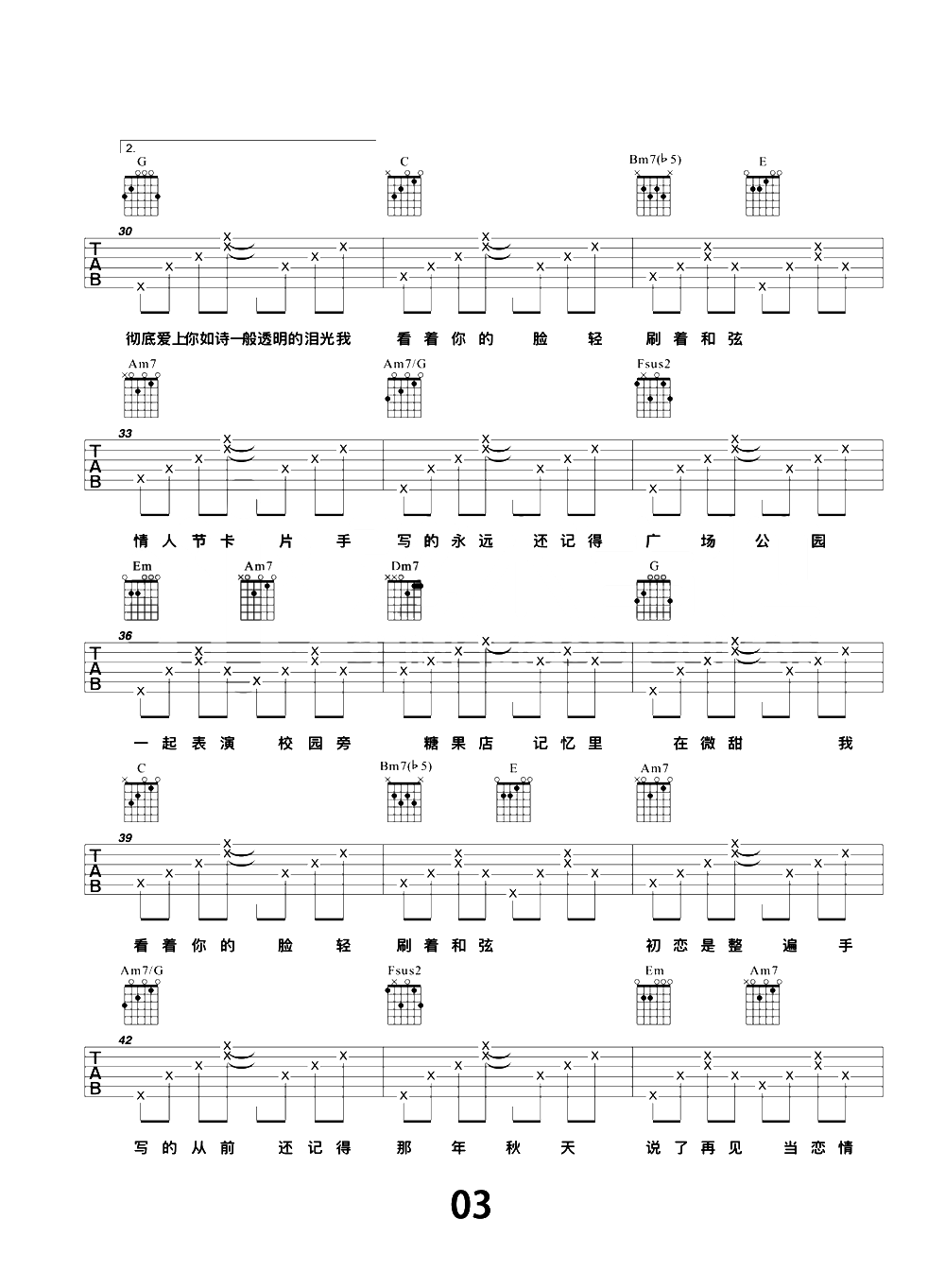 - 周杰伦《甜甜的》吉他谱_吉他弹唱谱_山山吉他编配