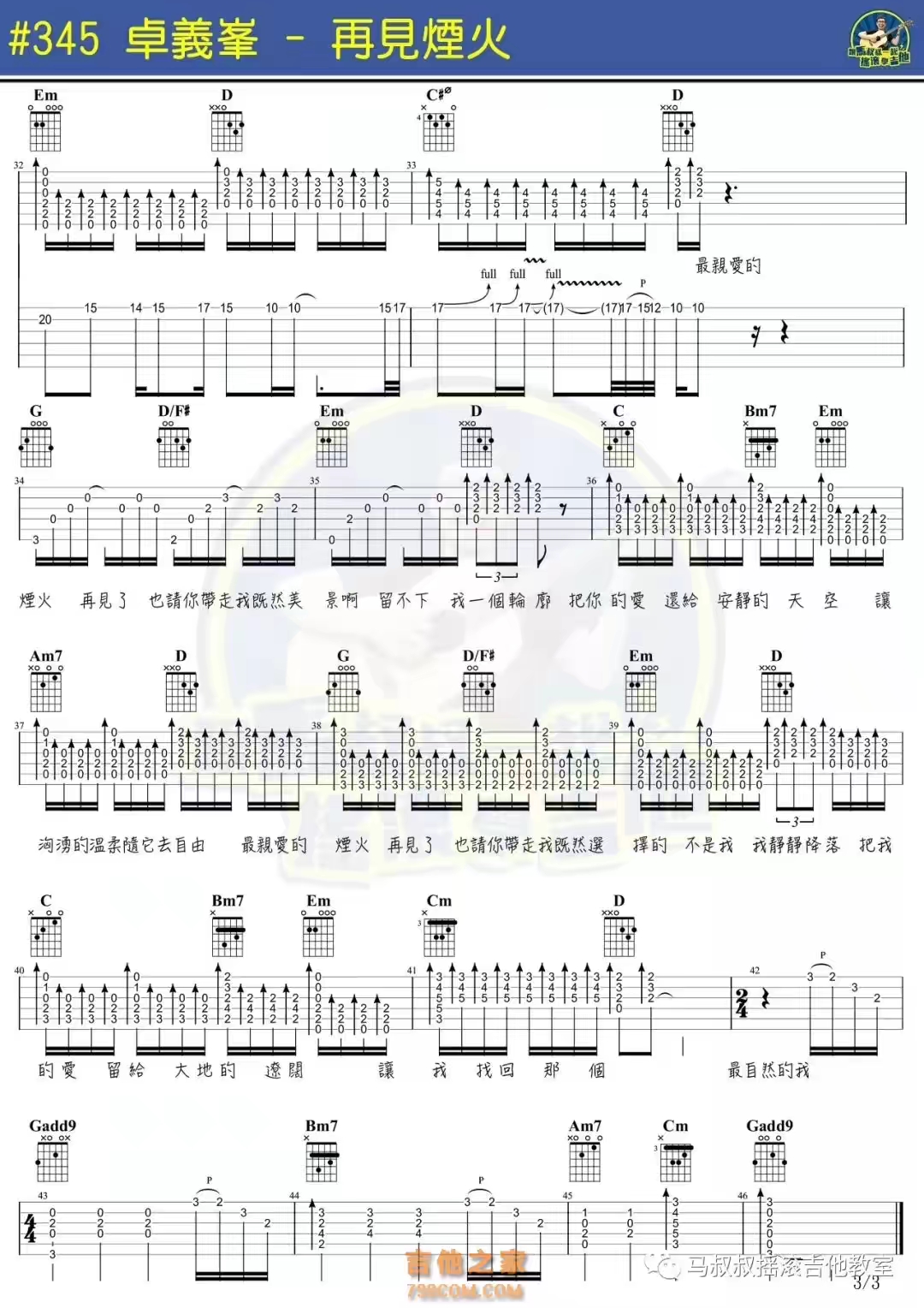 卓义峰《再见烟火》吉他谱_吉他弹唱谱_马叔叔吉他编配
