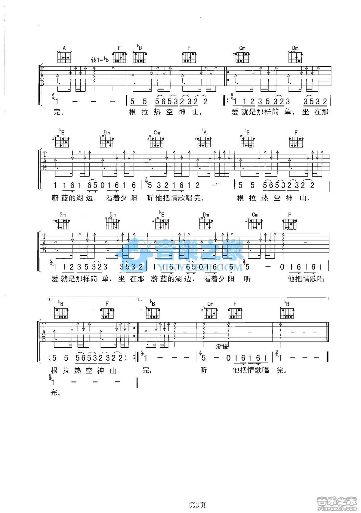 A转bB调版蒲巴甲《爱就是那样简单》吉他弹唱六线谱