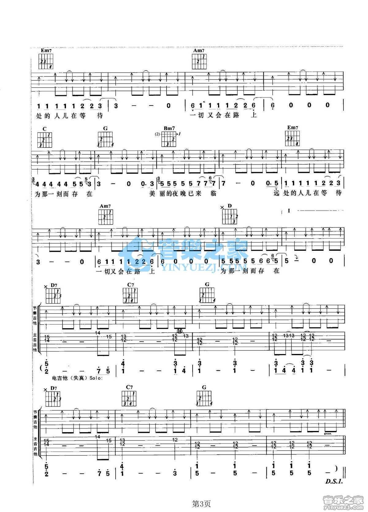 G调双吉他版虞洋《新的夜晚》吉他弹唱六线谱