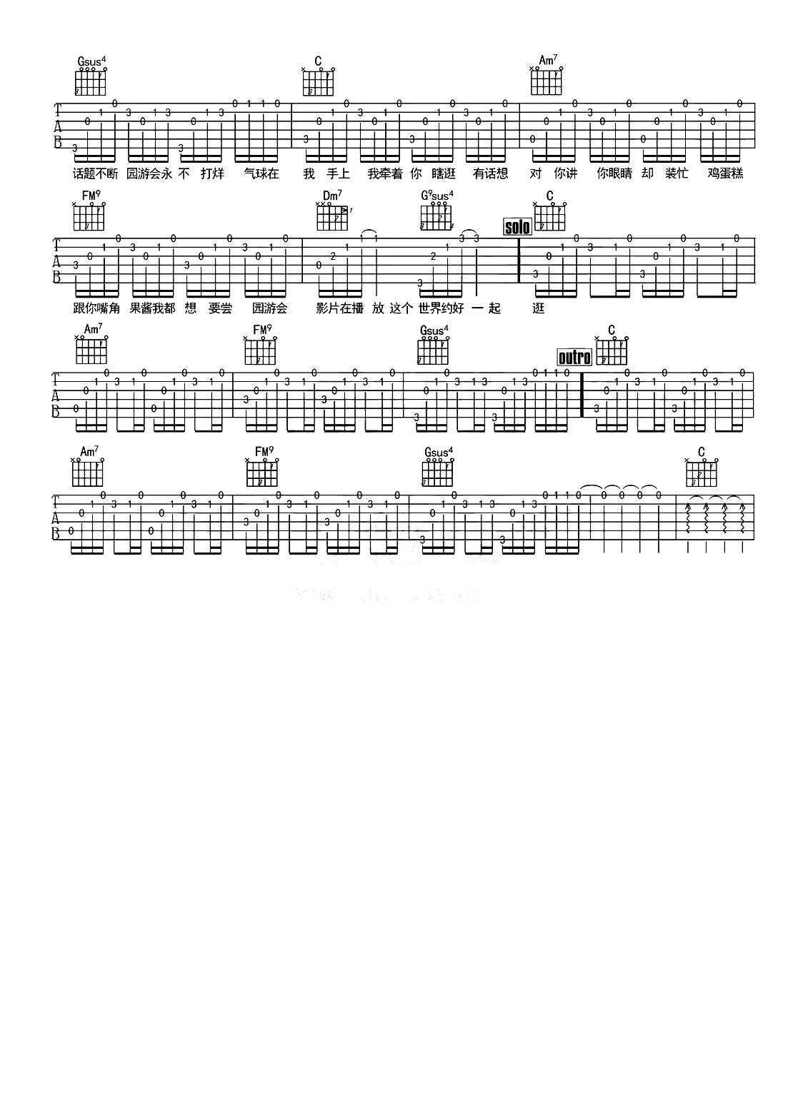 周杰伦《园游会》吉他谱_吉他弹唱谱_十万吉他手编配