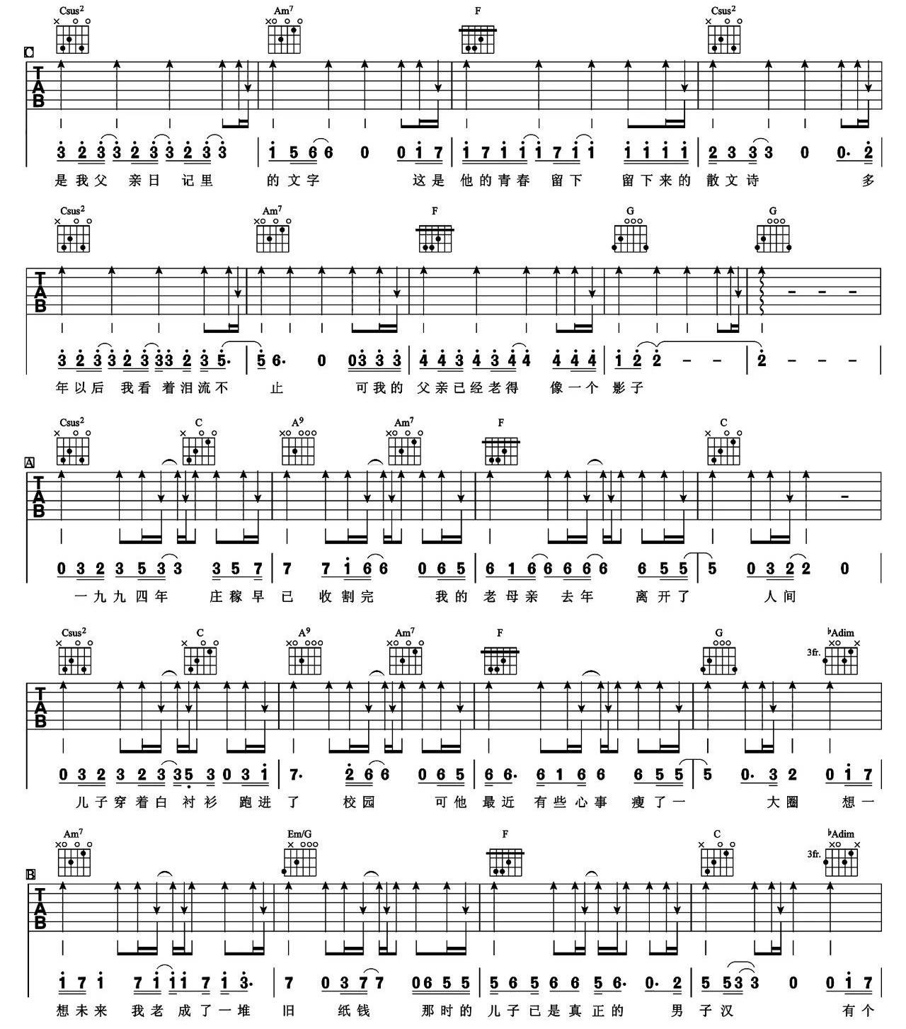 李健《父亲写的散文诗》吉他谱_吉他弹唱谱