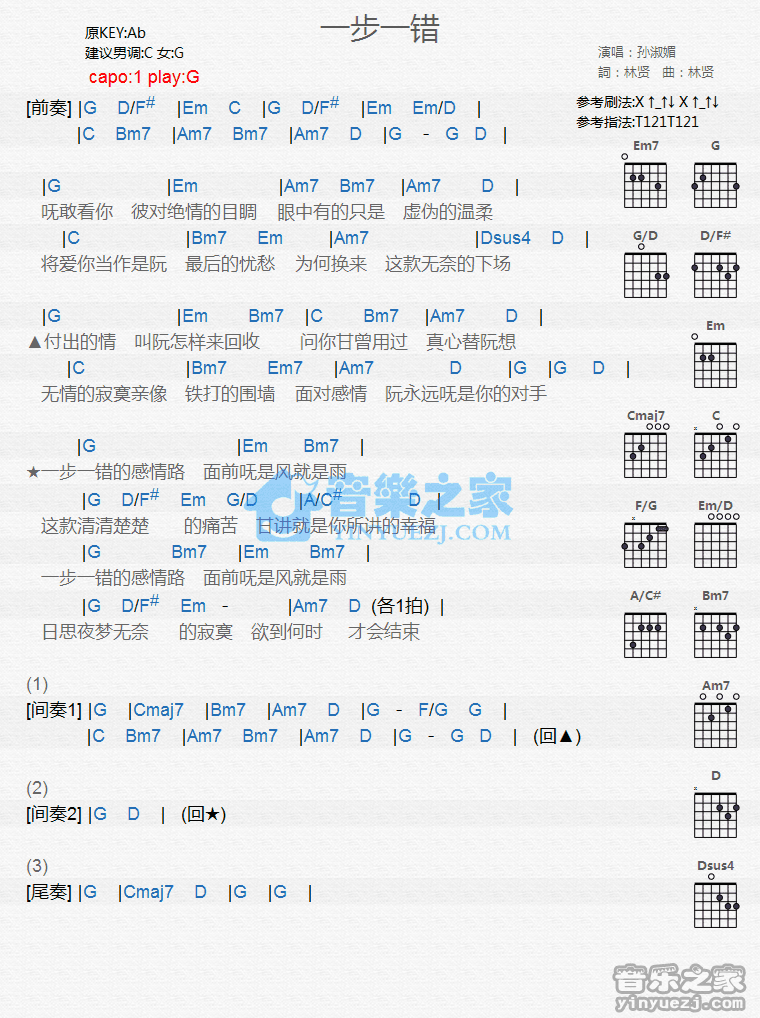 孙淑媚《一步一错》吉他谱_吉他弹唱谱