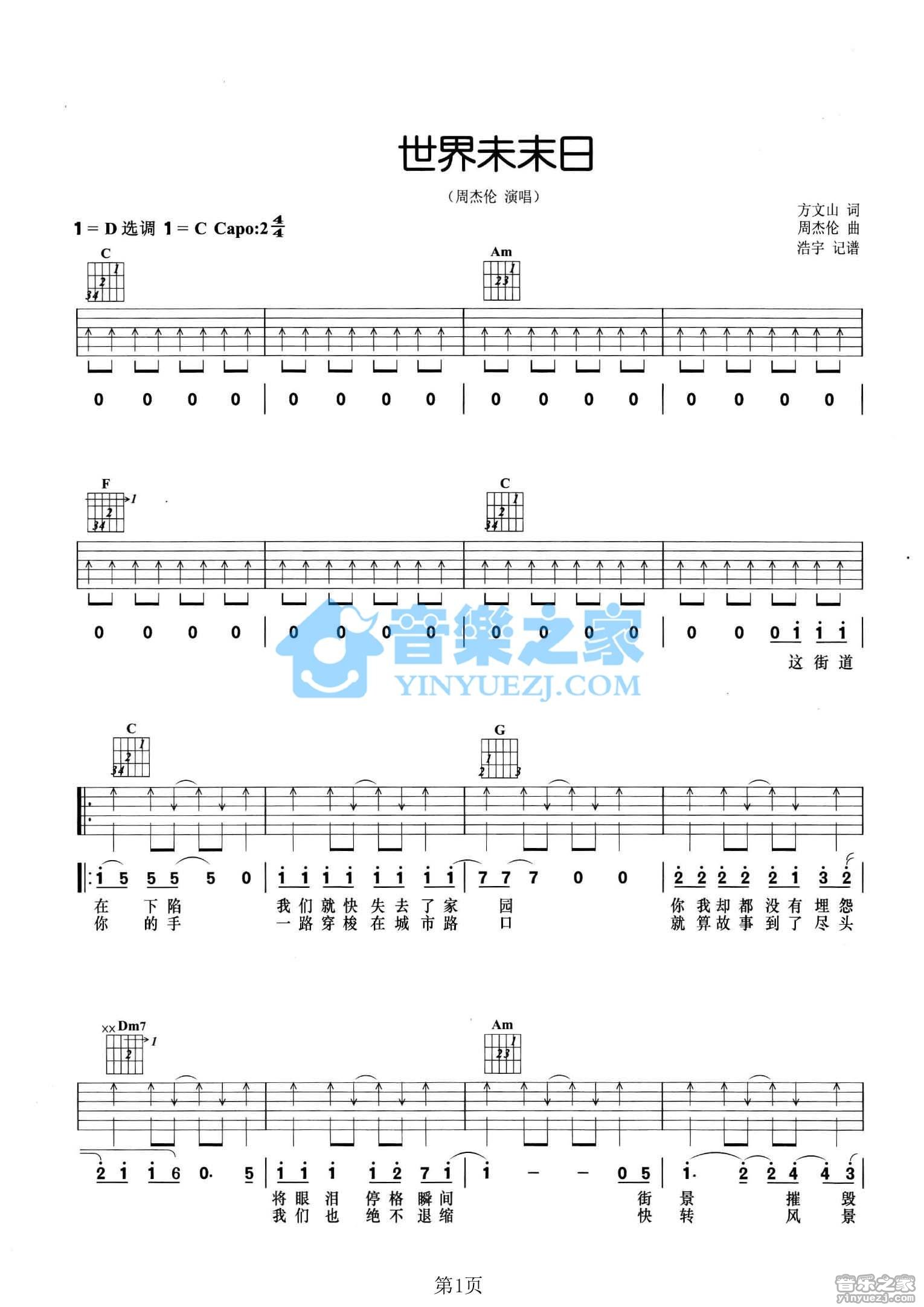周杰伦《世界未末日》吉他谱_吉他弹唱谱