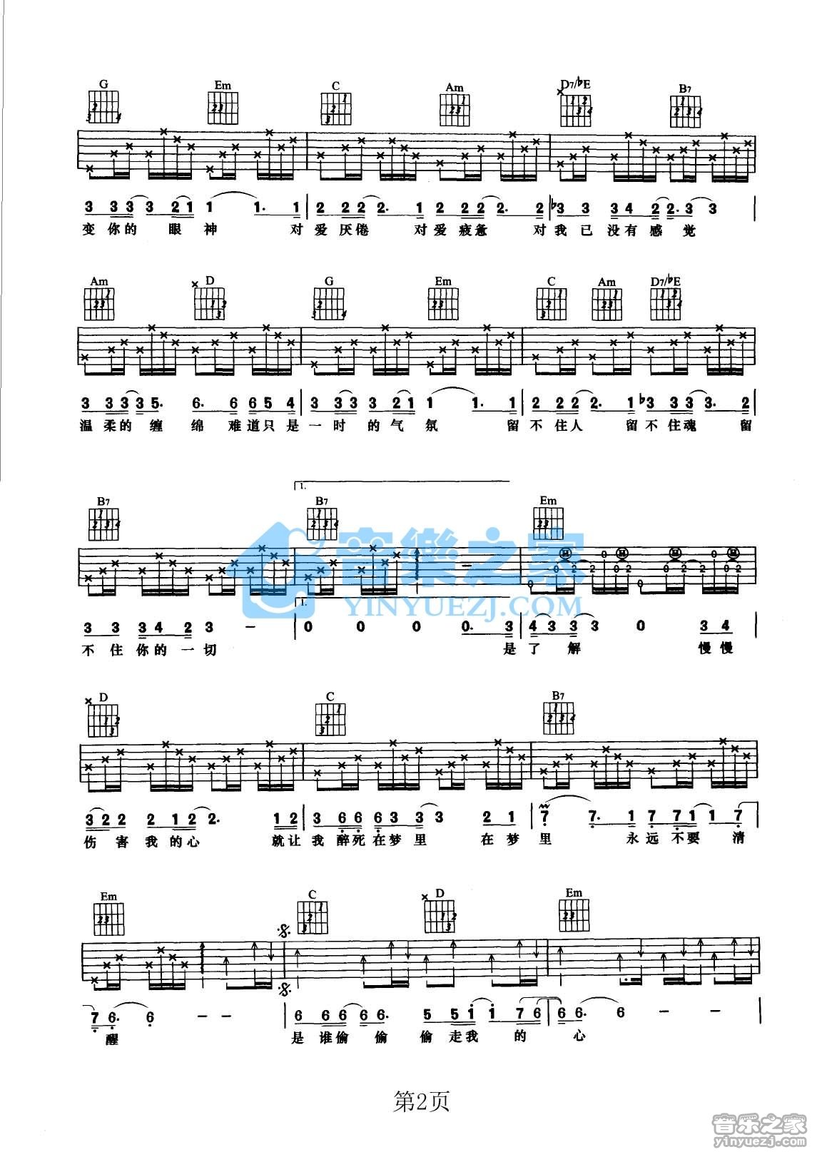 张学友《偷心》吉他谱_吉他弹唱谱_YYZJ编配